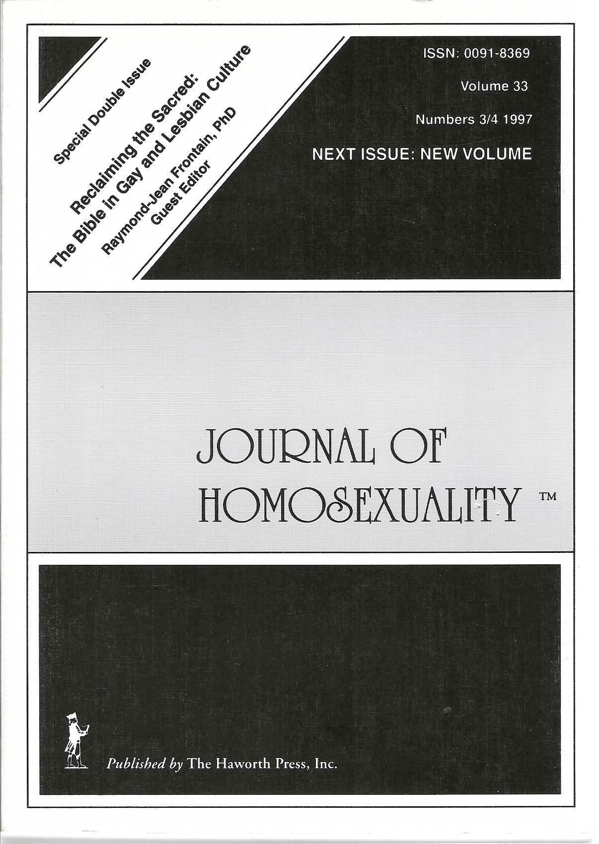 "The Journal of Homosexuality," established in 1976 and published on a monthly basis through to the present, is a peer-reviewed academic journal focused on research into sexual practices and gender roles. The founding editor was Charles Silverstein, followed by Paul De Cecco and the current editor is Dr. John Elia of San Fransisco State University. Originally published by Hawthorne Press, it has since been taken over by Taylor and Francis, which publishes it under its Routledge imprint.Publication Details