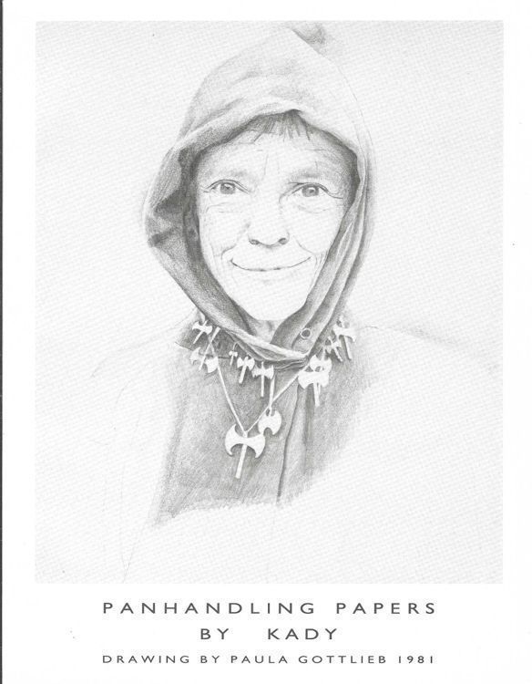 This image is similar to the drawing by Paula Gottlieb featured on the cover of Kady's book - the Panhandling Papers. Kady was a jewelry maker and silversmith. She primarily made Labyrs and often wore necklaces of them when selling at women's festivals.Collection