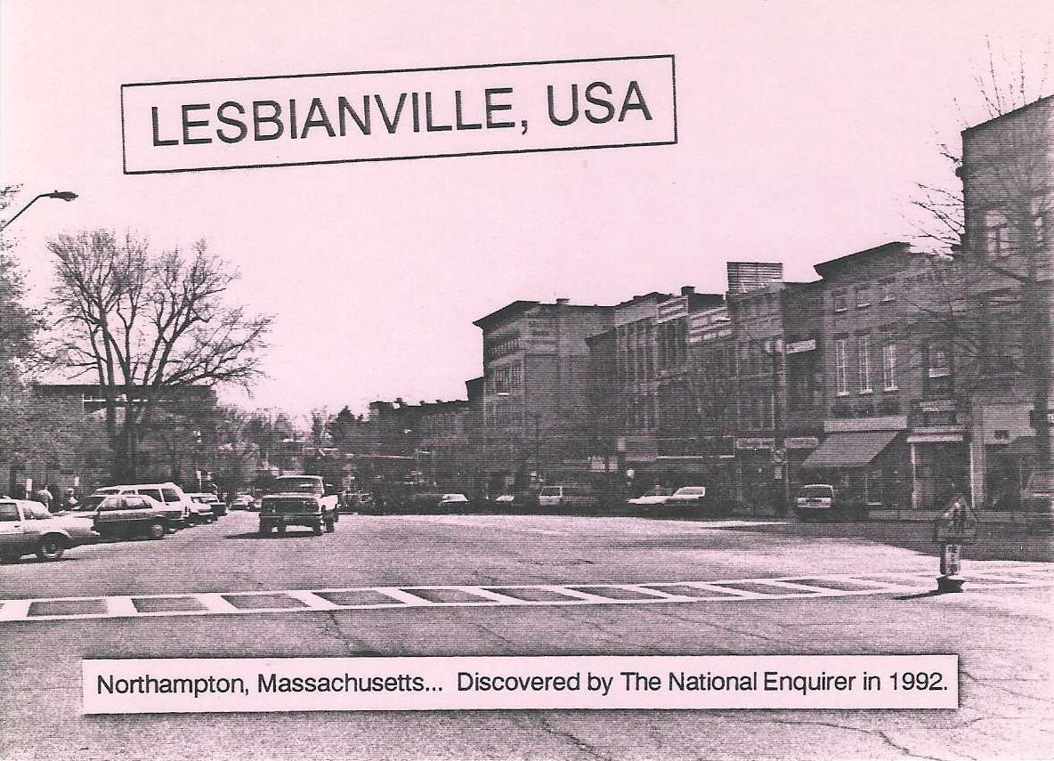 Pink Card with Lesbianville, USA - Northampton, MA...Discovered by the National Enquirer in 1992Context