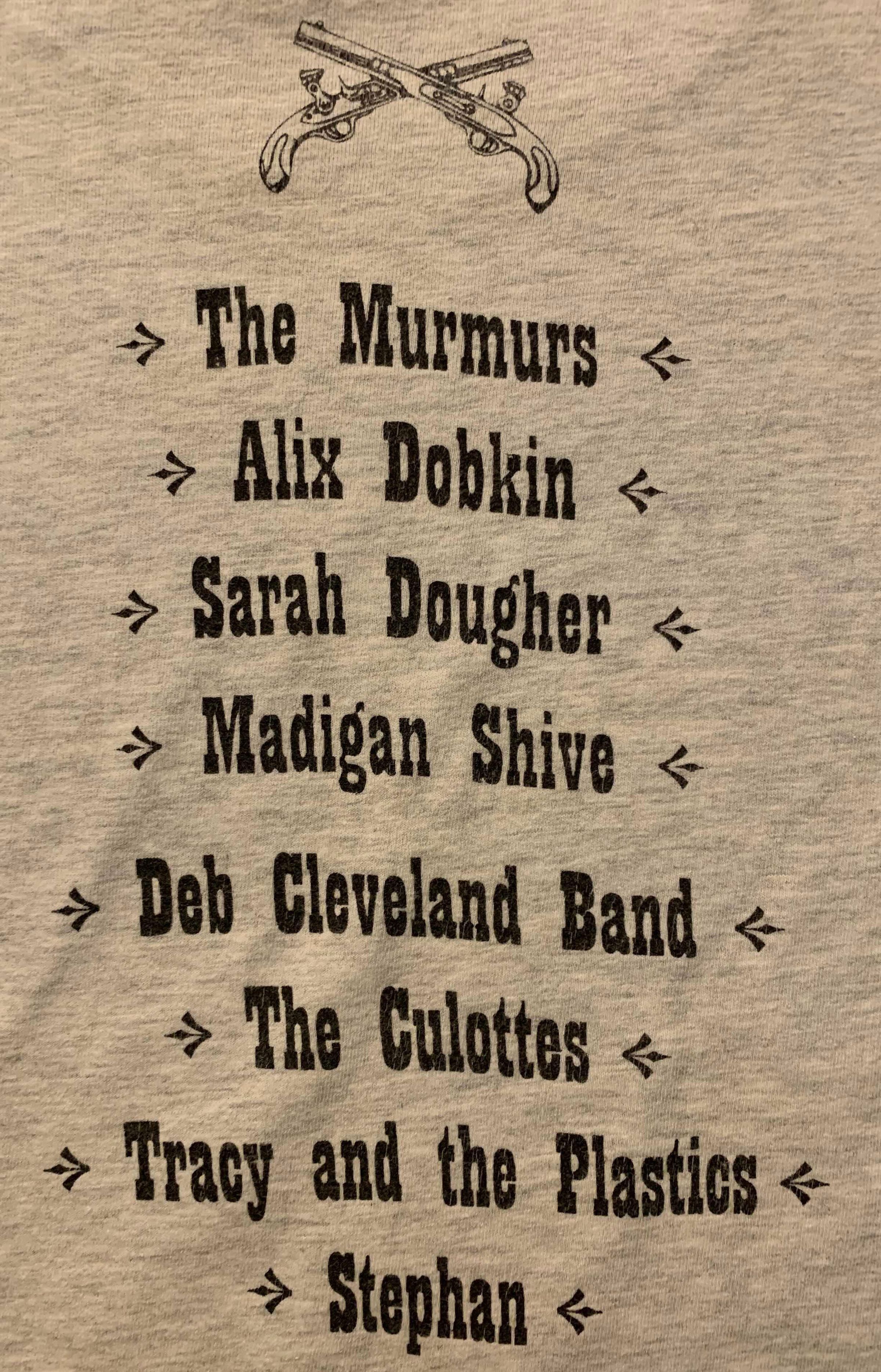 List of performers. Design of crossed pistols.Clothing/Dress/Costume Details