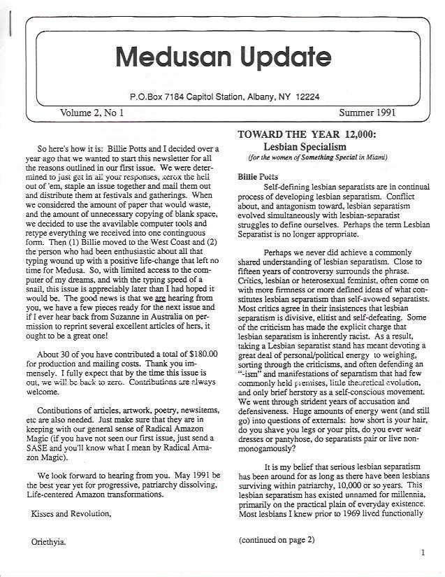 Single issue. Newsletter. General focus on Lesbian Separatism.