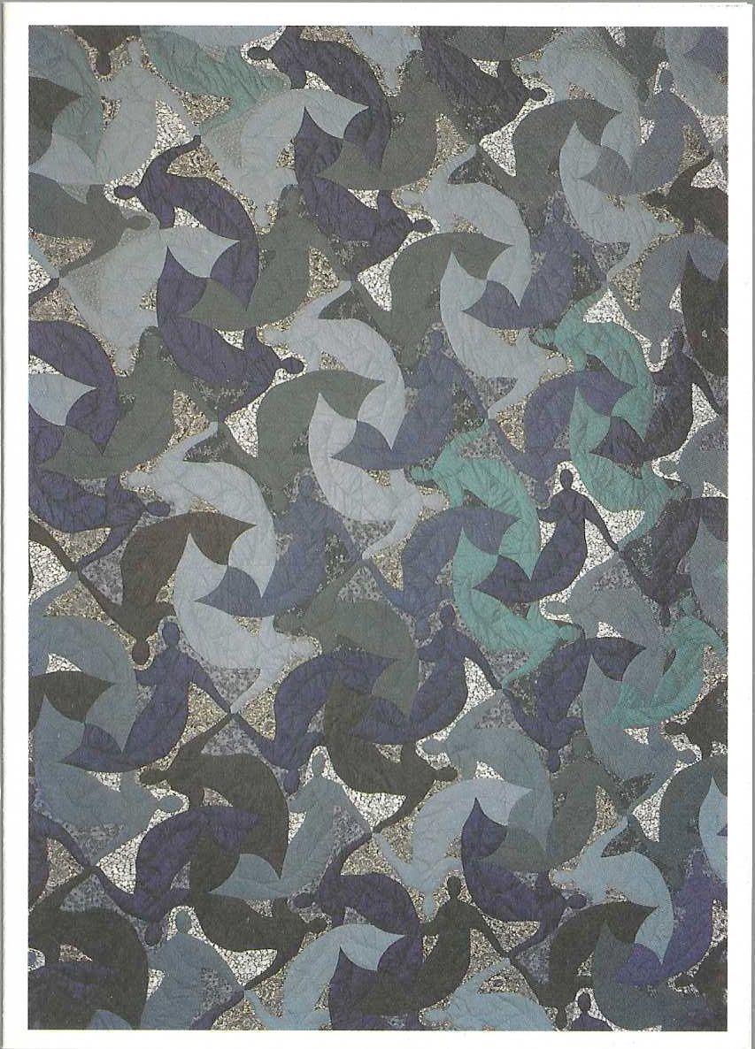 Machine-pieced, hand-quilted, tessellated quilt; conceived, designed and sewn by Selma Miriam; actual size measures 82" by 106"Collection