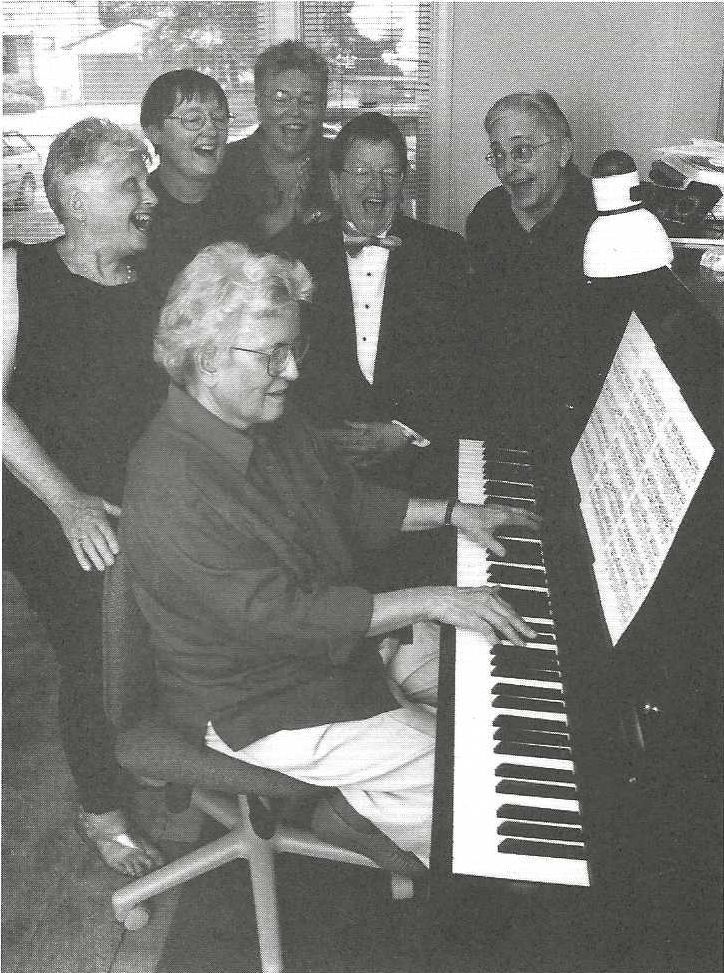 OLOC Singers - L-R Jo Hiner, 75; Mary Henry, 62; Pat Rouse, 62; Annalee Stewart, 73; Pauline Iocono, 62; Fran Valasek, 74 at the piano.