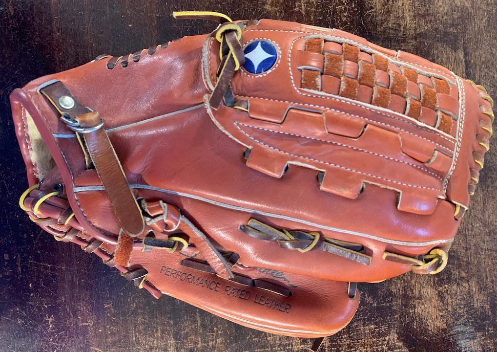 This glove is almost in new condition. It's the last one she owned -- she either lost or discarded all earlier gloves. It's a pitcher's glove - so probably acquired in the later of her playing years (circa1988-1991).Collection