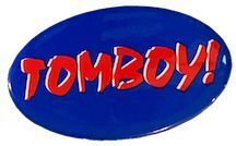 Advertising button for the book Tomboys! Tales of Dyke Derring-Do, edited by Lynne Yamaguchi | Karen Barber. Published by Alyson Publications, 1995.Collection