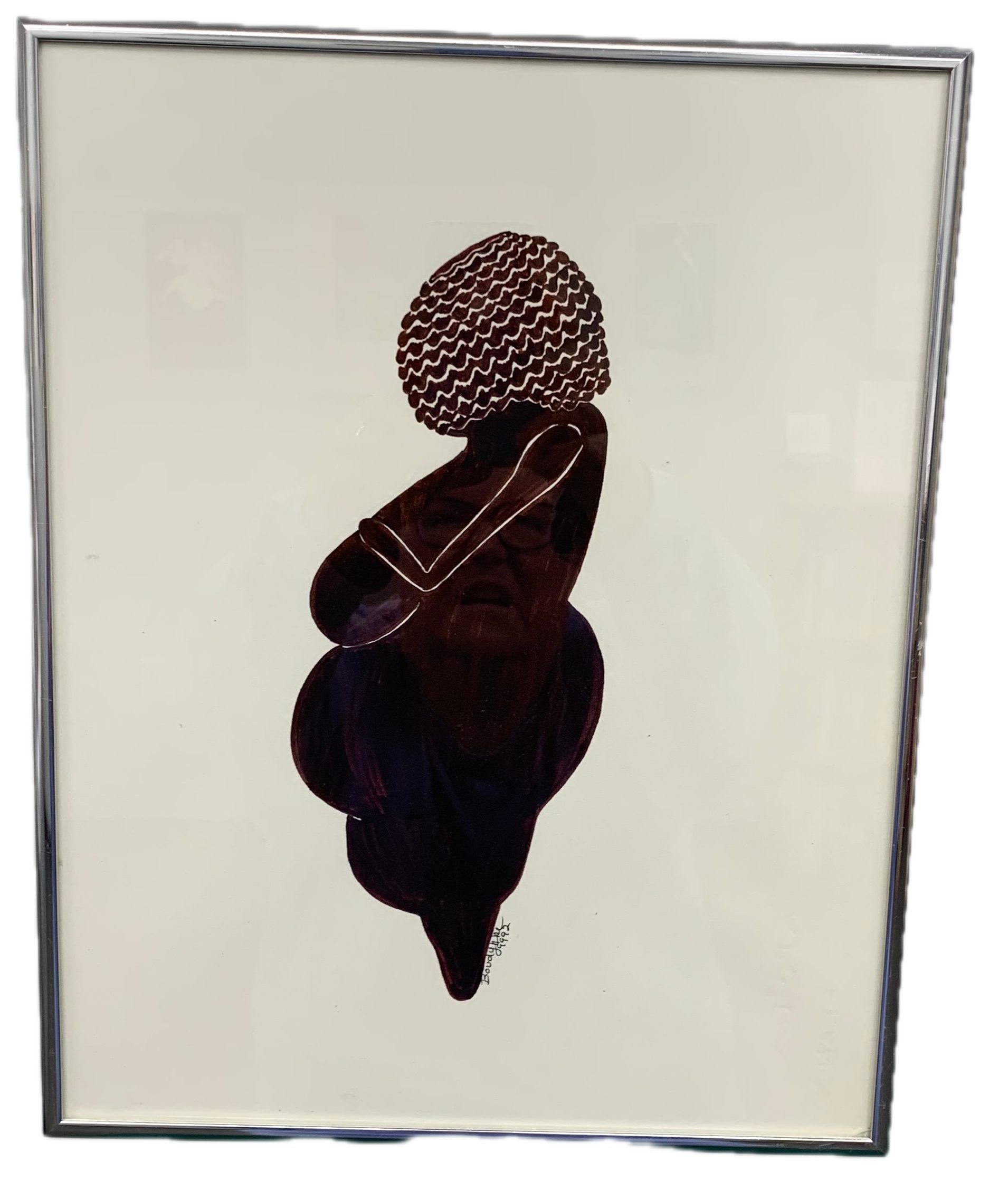 Black and white - pen and ink drawing re-creation of ancient image of Venus of Willendorf.Type of Drawing