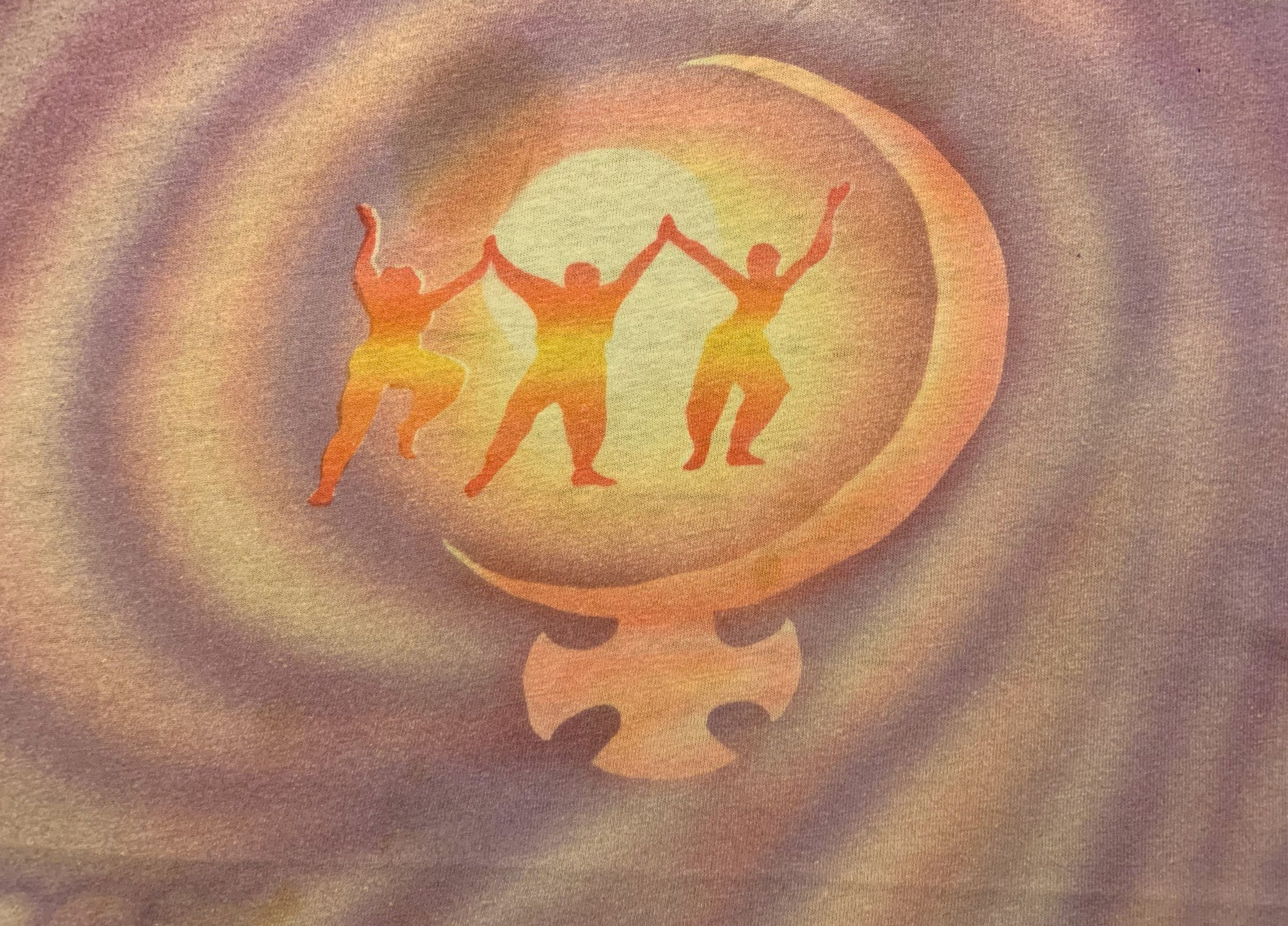 Women's symbol with labrys / Moon imagery and tie dye circular ripplesClothing/Dress/Costume Details