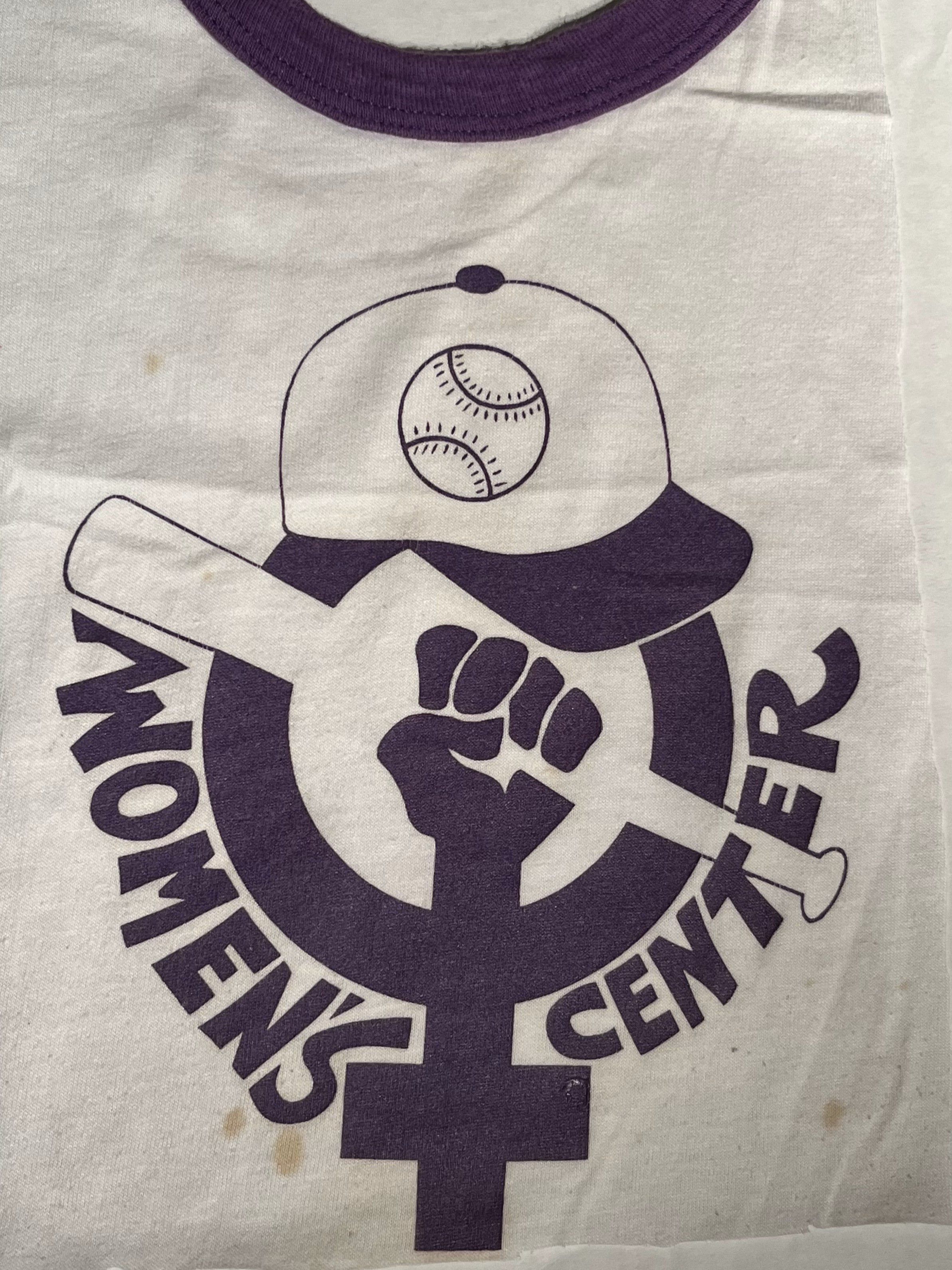 Women's symbol with fist, softball hat, and bat. Panel cutout.Use