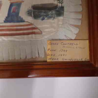 Framed Apron: James A. Cantrell Apron. (South Carolina). A.F.M of South Carolina, F&A.M of Georgia. Born 1798, Died 1881"Made/Created