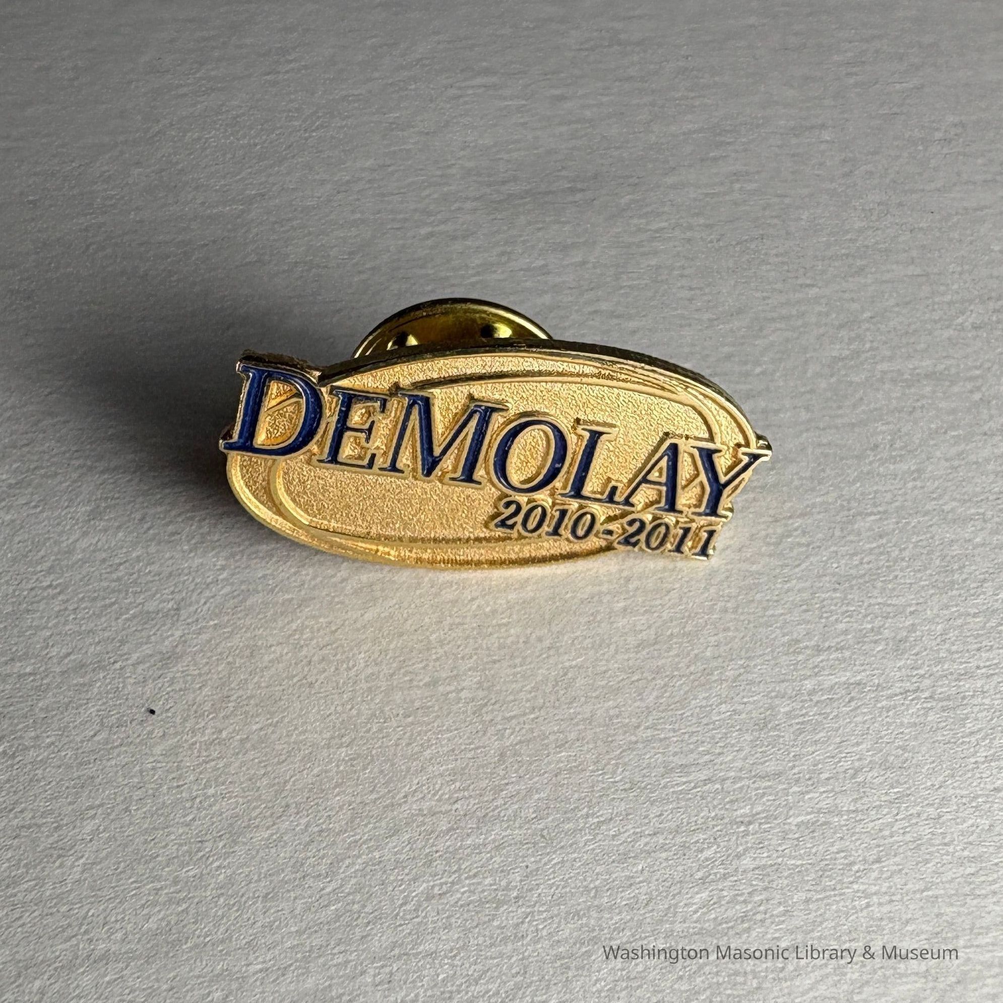 Pin: Gold with black lettering. "Demolay/2010-2011" Belonged to PGM James O. Wood (2011)Collection