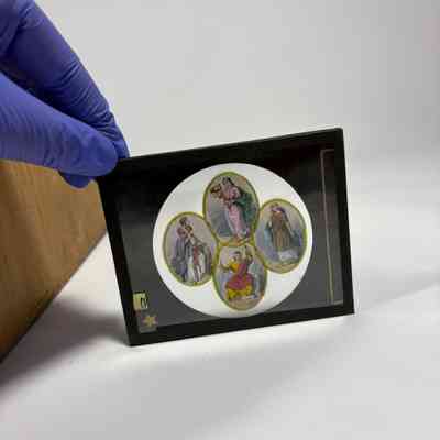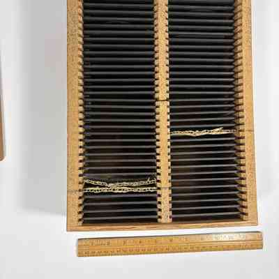 Glass Slides: Box containing 39 glass 1st, 2nd, and 3rd degree slides. c. 1920s.