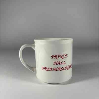 Cup: Coffee Cup. White with Red, Yellow, and Black. "Phylaxis Society/Prince Hall Masonry"