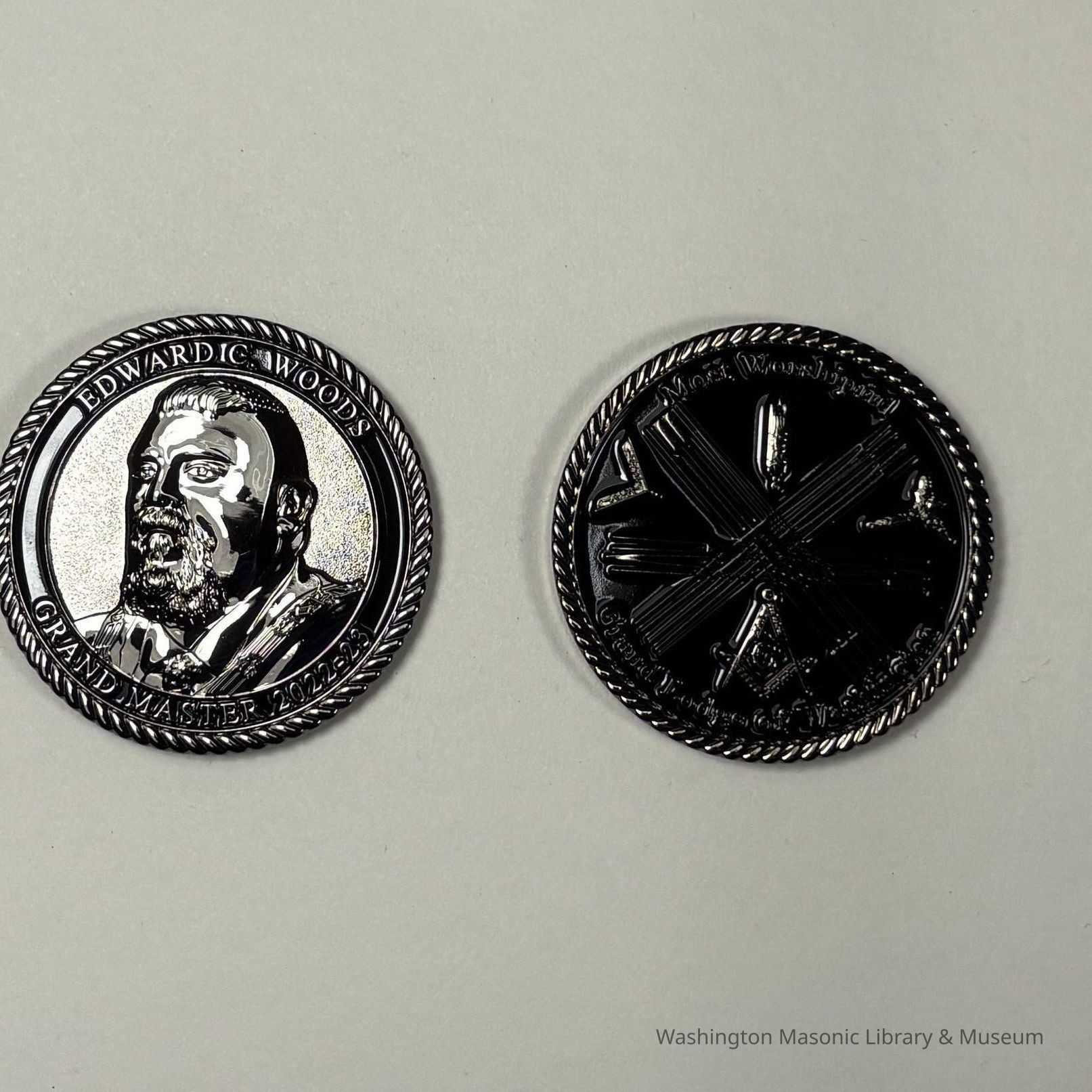 2 Coins: Two Past Grand Master Coins, MW Ed Woods (2022-2023).Entry/Object ID