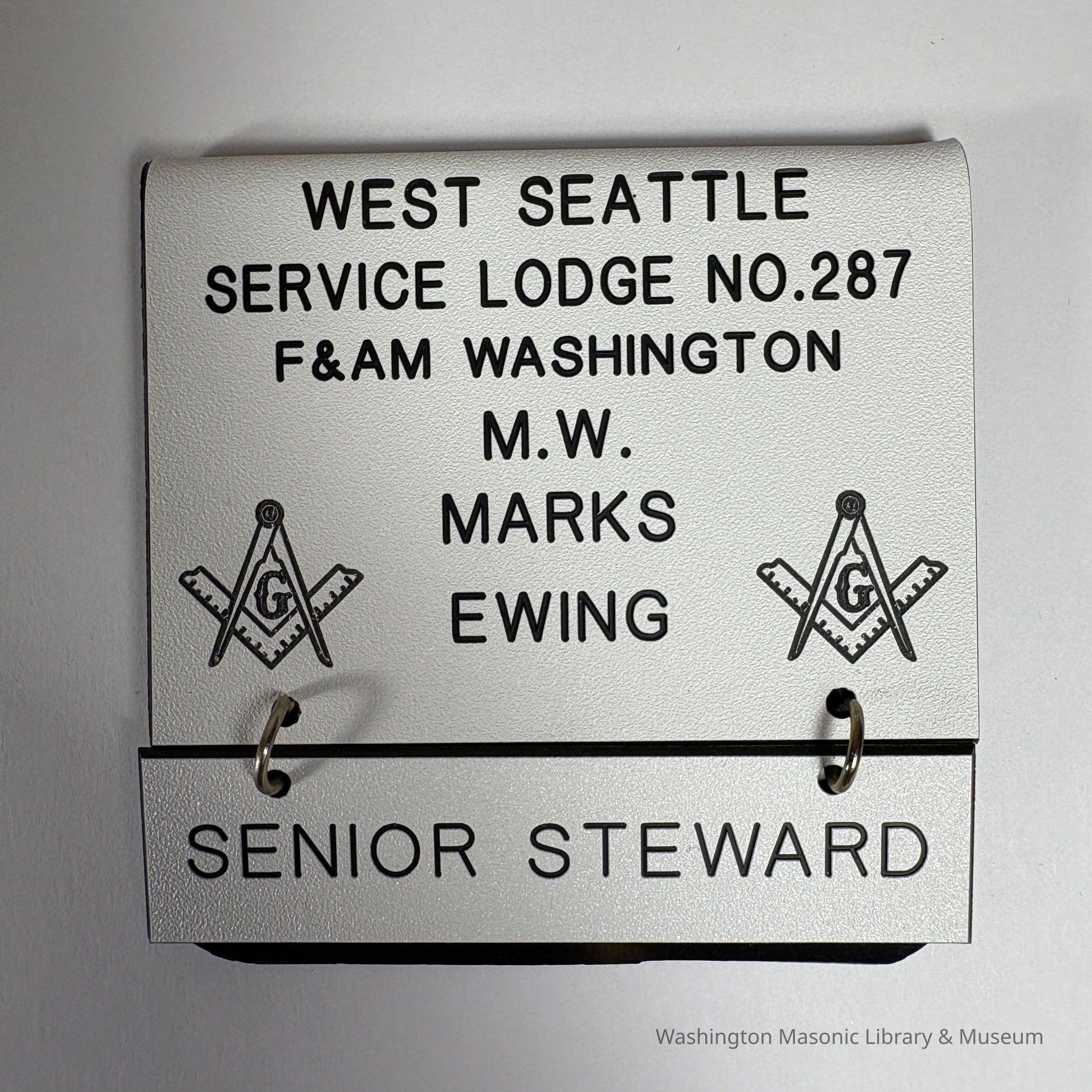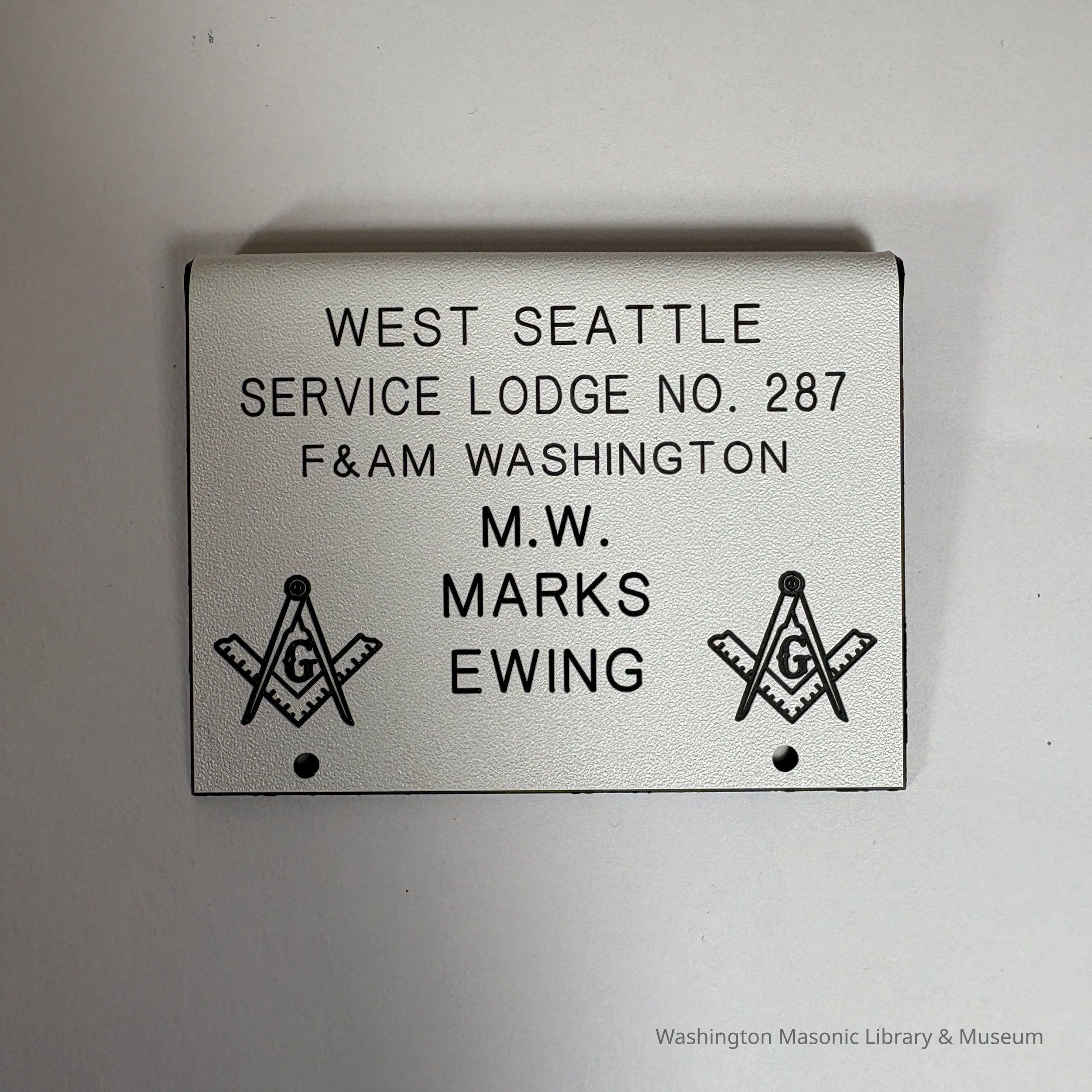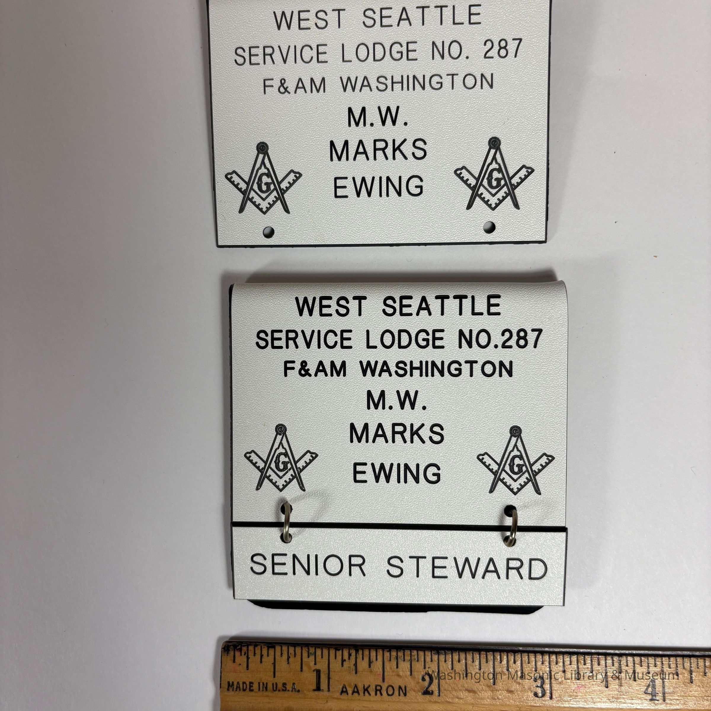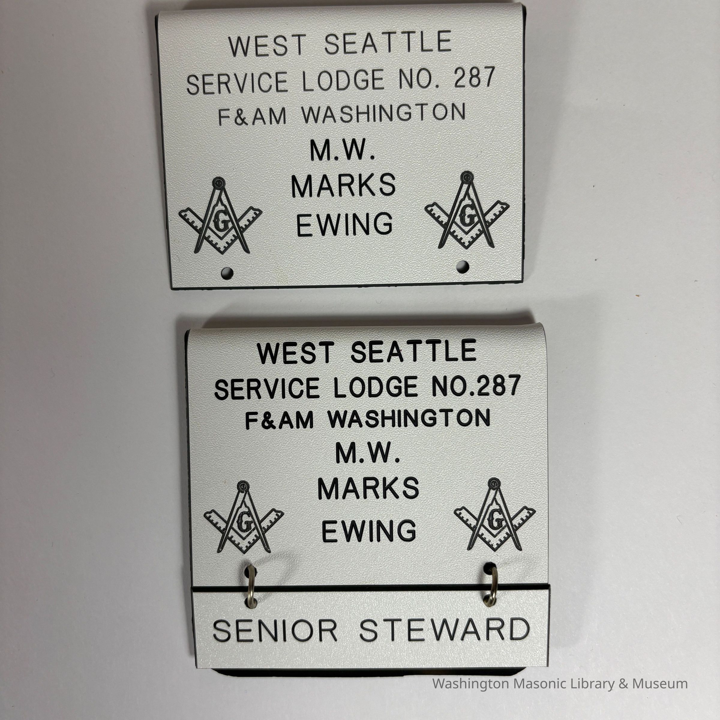 2 Name Tags: White with Black lettering. West Seattle Service Lodge No. 287, F&AM Washington M.W. Marks Ewing (circa late 20th century)Entry/Object ID