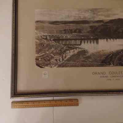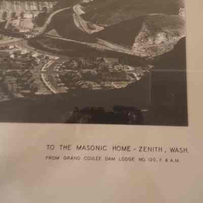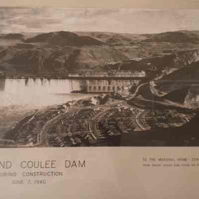 Photograph: Framed. "Grand Coulee Dam during construction. June 7, 1940"/ To the Masonic Home-Zenith, Wash from Grand Coulee Dam Lodge No. 120, F&AM"Collection