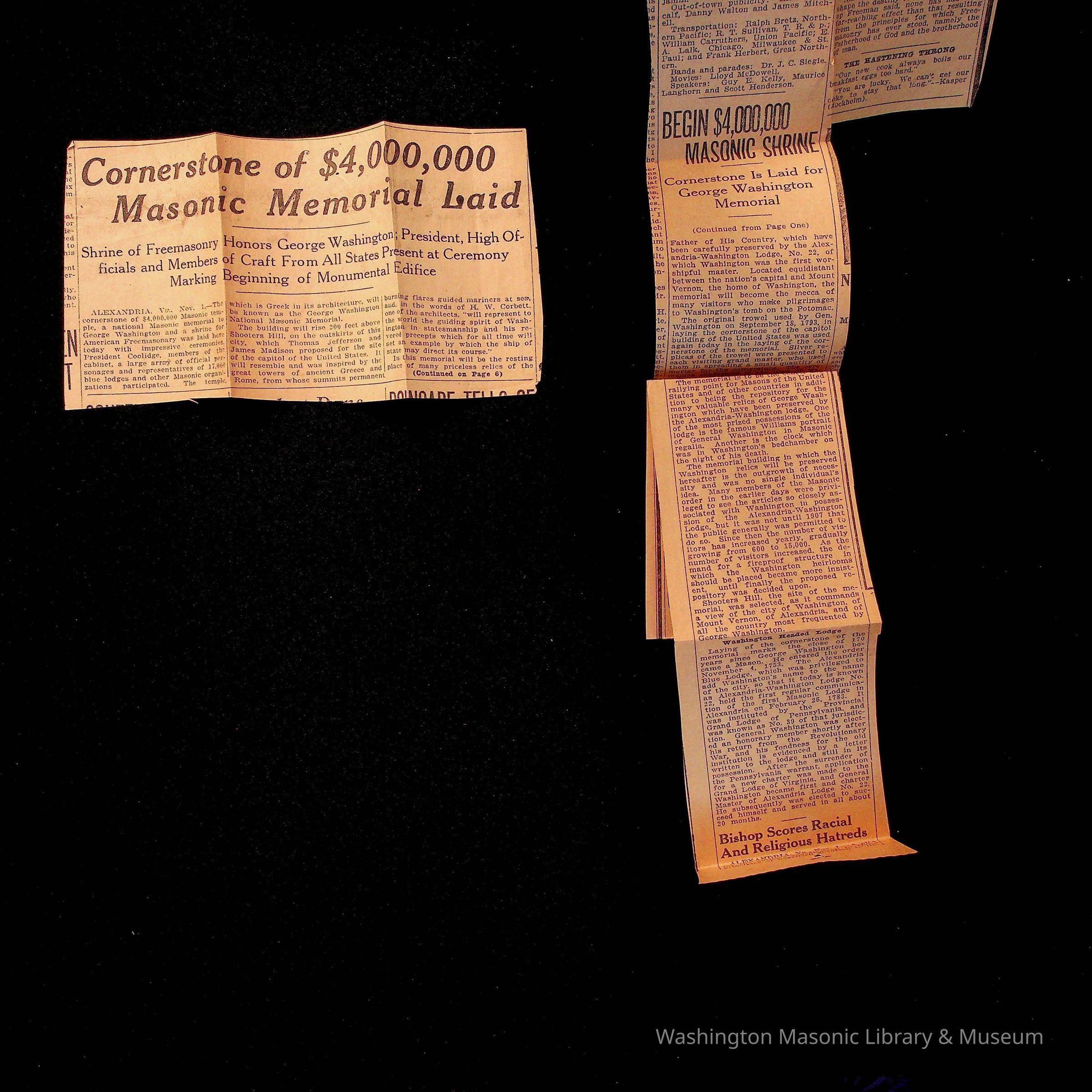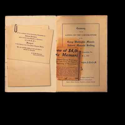 Pamphlet and Ephemera: Cornerstone laying for George Washington Memorial, Alexandria VA (1923)Entry/Object ID