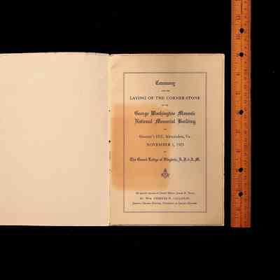 a) Pamphlet: Cornerstone laying for Alexandria, VA 1923. Signed by the GM of WA at the time, as well as Past GMs, Grand Secretary
