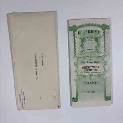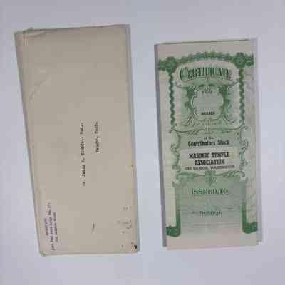 Two Certificates: 2 Masonic Temple Association, Gig Harbor, Washington Share Certificates issued to James H. Blundell (1950).Entry/Object ID