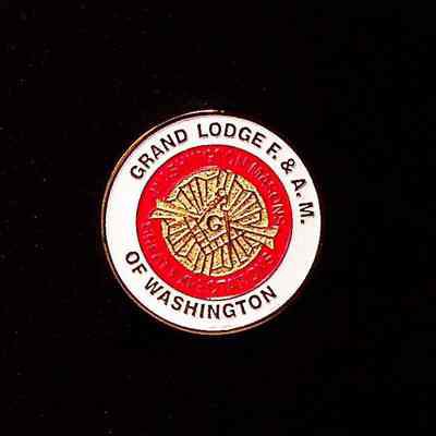 Back: Outer white rim: "Grand Lodge F&AM of Washington", Inner red rim: " Washington Masons, Great Expectations". Gold middle circle with square and compass design.Collection