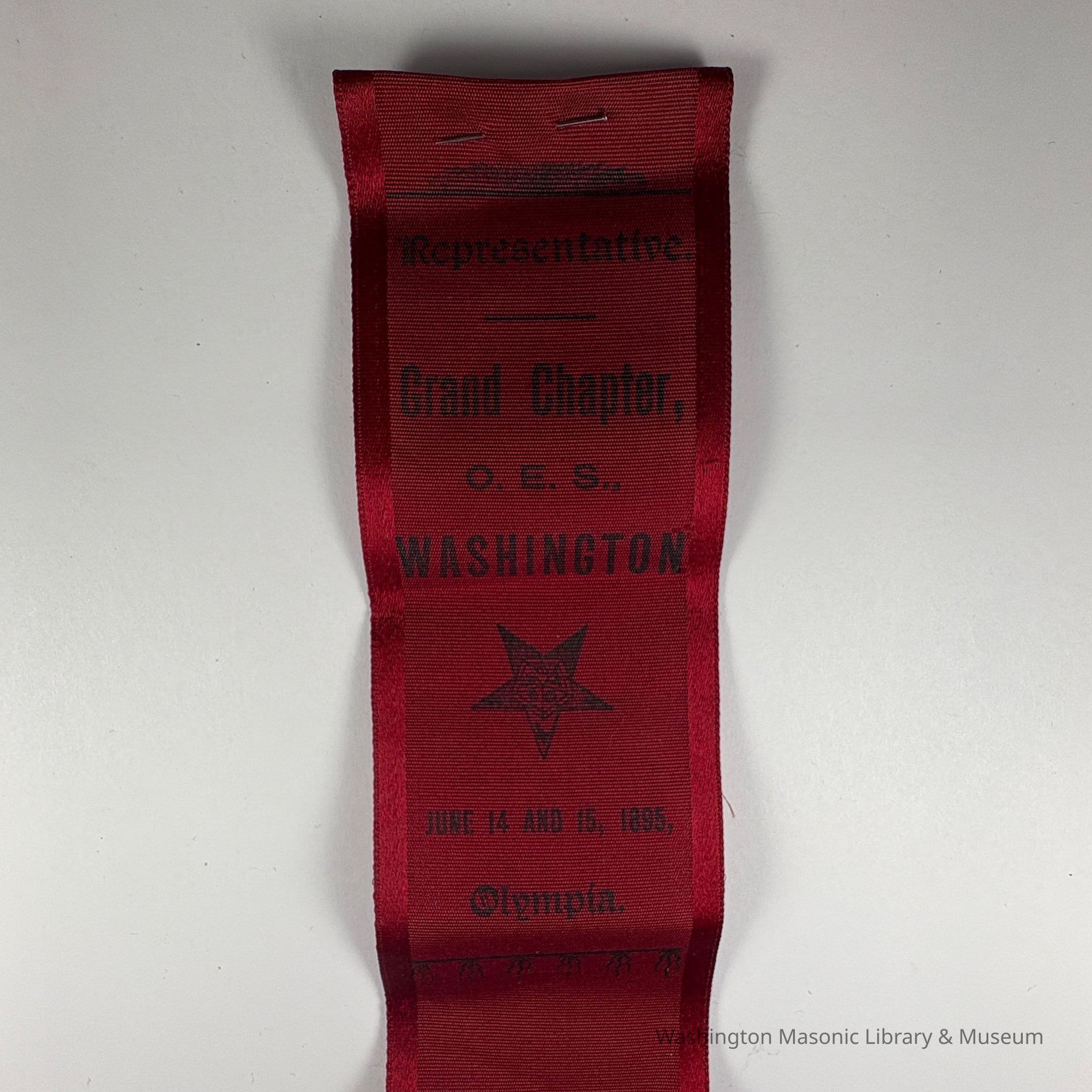 Ribbon: Red with Black lettering. "Representative/Grand Chapter, O.E.S., Washington /June 14 and 15, 1895" (1895)Collection