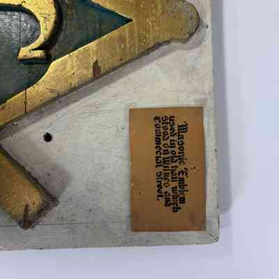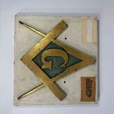 Plaque: Masonic Emblem. Square and Compass used in the old hall at Steilacoom No.2 , which stood at Wilkes and Commercial Street, prior to 1910. Puyallup, Washington. Likeliest timeframe: 1872-1910 (based on historical notes in accession folder)Made/Created