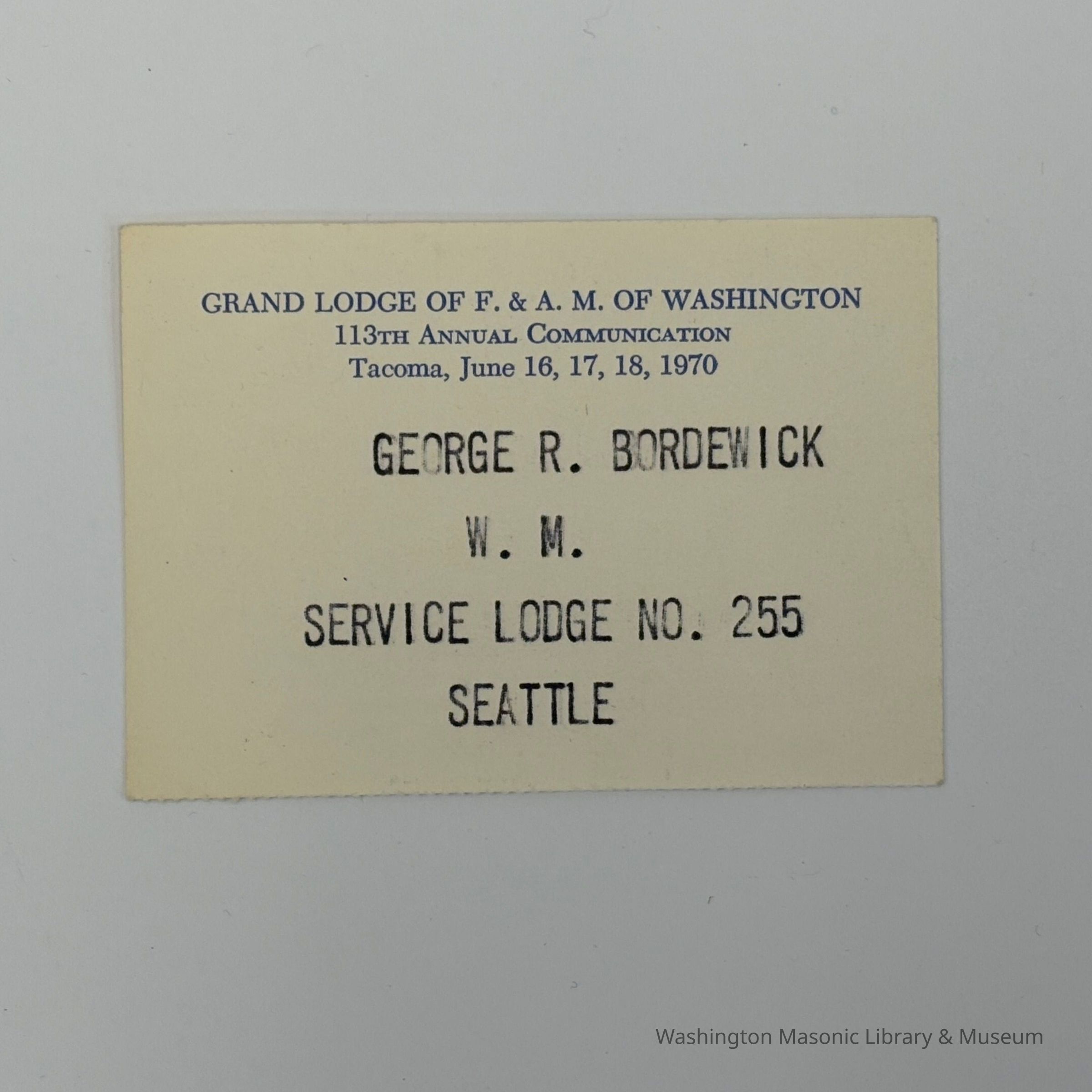 Badge: MWGLWA 113th Annual Communication Worn by PGM George R. Bordewick (1970)Entry/Object ID