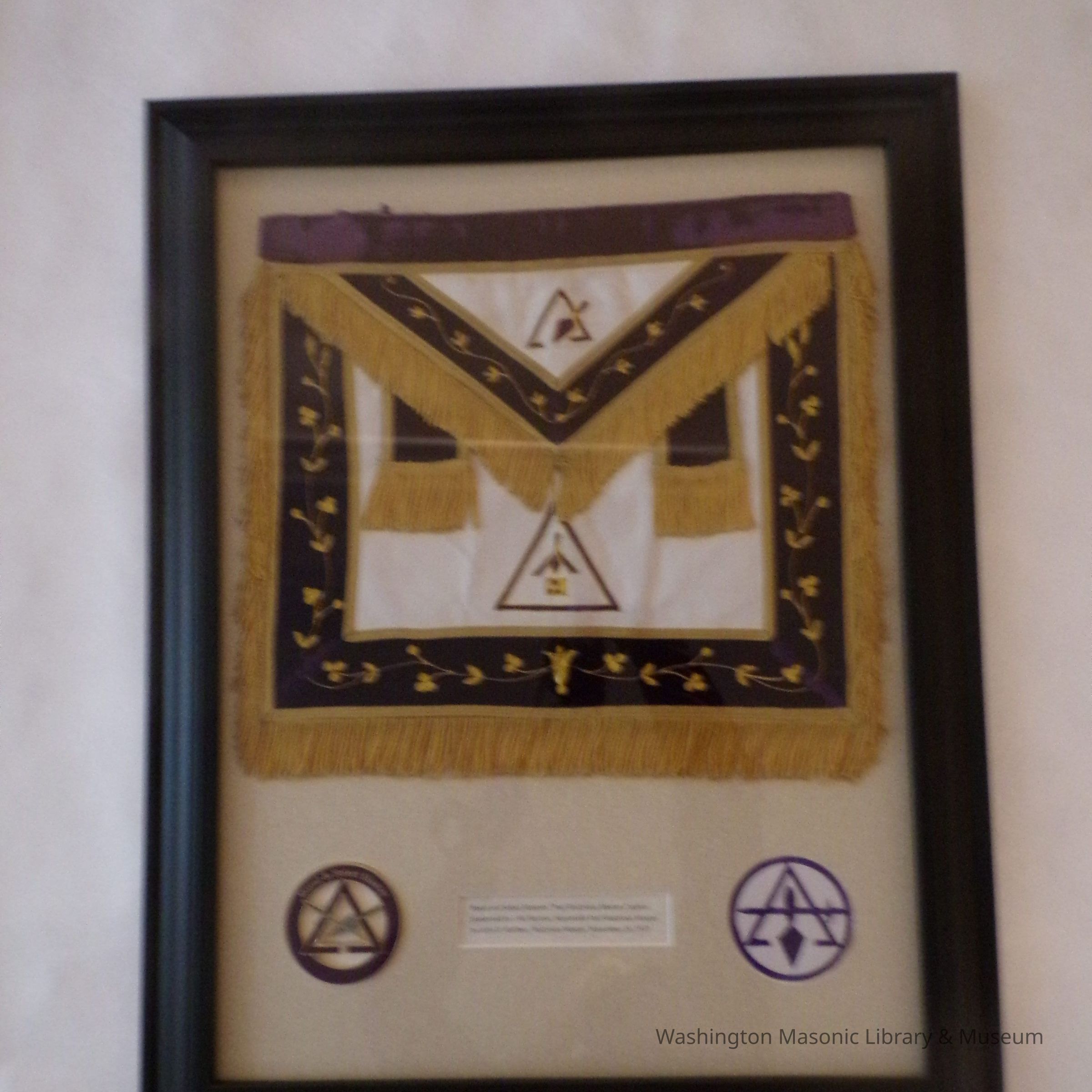Framed Apron: "Royal an dSelect Mastes "Past Illustrious Masters" apron presented by J. W. Norton, Honorable Past Illustrious MAster by John D. Kelliher, Illustrious Master, November 25, 1977"Collection