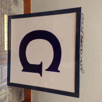Sign: Large, blue and white, Electric East of a lodge sign "G"Entry/Object ID