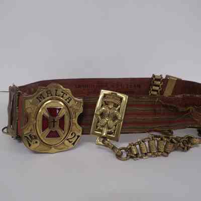 Belt: Knights Templar Malta No. 21 belt. On the inside is inscribed: "Presented to Lafayette Lodge No. 241 by Alice Ward Cameron"Collection