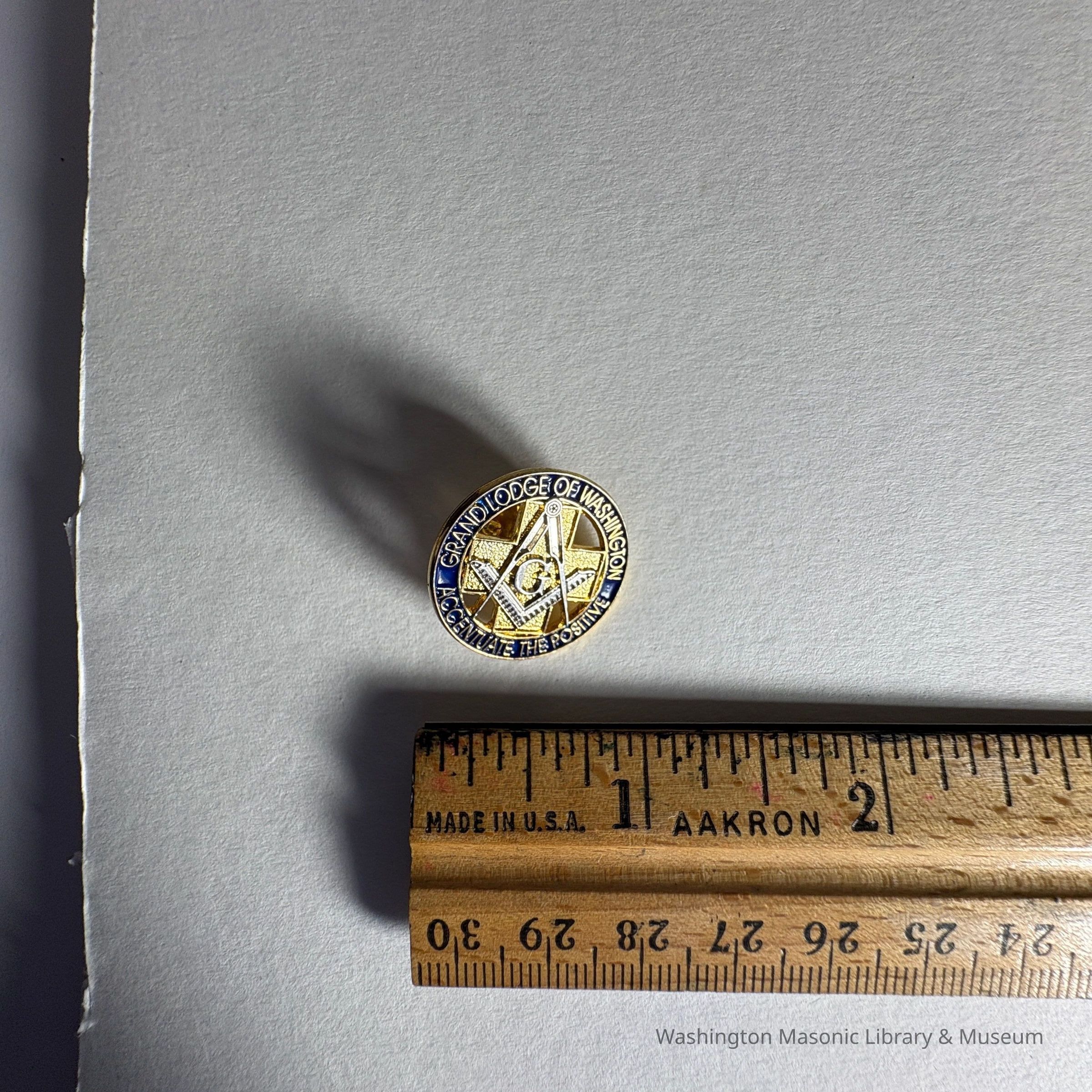 Pin: "Grand Lodge of Washington/Accentuate the Positive." This pin was given out by Grand Master Wayne Irvine Smith during his year (2007-2008). Found in a cash of pins donated by PGM James O. Wood.Collection