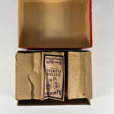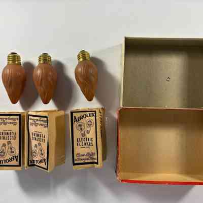 Three Light bulbs: Likely used as Lesser Lights. Cardboard protective sleeves, and box. Aerolux Light Corp, c. 1950. Box was originally used for golf balls.Collection