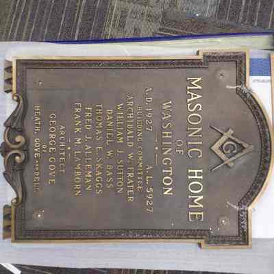 Plaque: Bronze. "Masonic Home of Washington" (1927). Plaque that was once placed outside the MRC, taken down once the building was sold.Collection