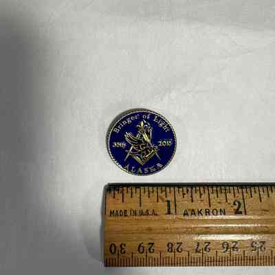 Pin: Blue and Gold. Square and compass and eagle. "Bringer of Light: 35th, 2015. Alaska". Presumably collected by PGM Sam Roberts during his year as Grand Master.Collection