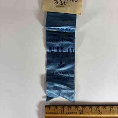 Ribbon: Blue with dark blue lettering, and paper name plate. "H.W. Tyler/P.G.M./ Seventy-Seventh Annual Communication Grand Lodge of Washington F.&A.M./ Tacoma/ June, 1934"Collection