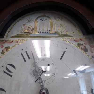 Grandfather Clock: Has masonic symbols on front. Masonic Library Association Plaque. Inside is note that says "presented to me, Cassandra WIlliams by my mother Caroline Weeks, this clock on Dec. 25th, 1911.Collection