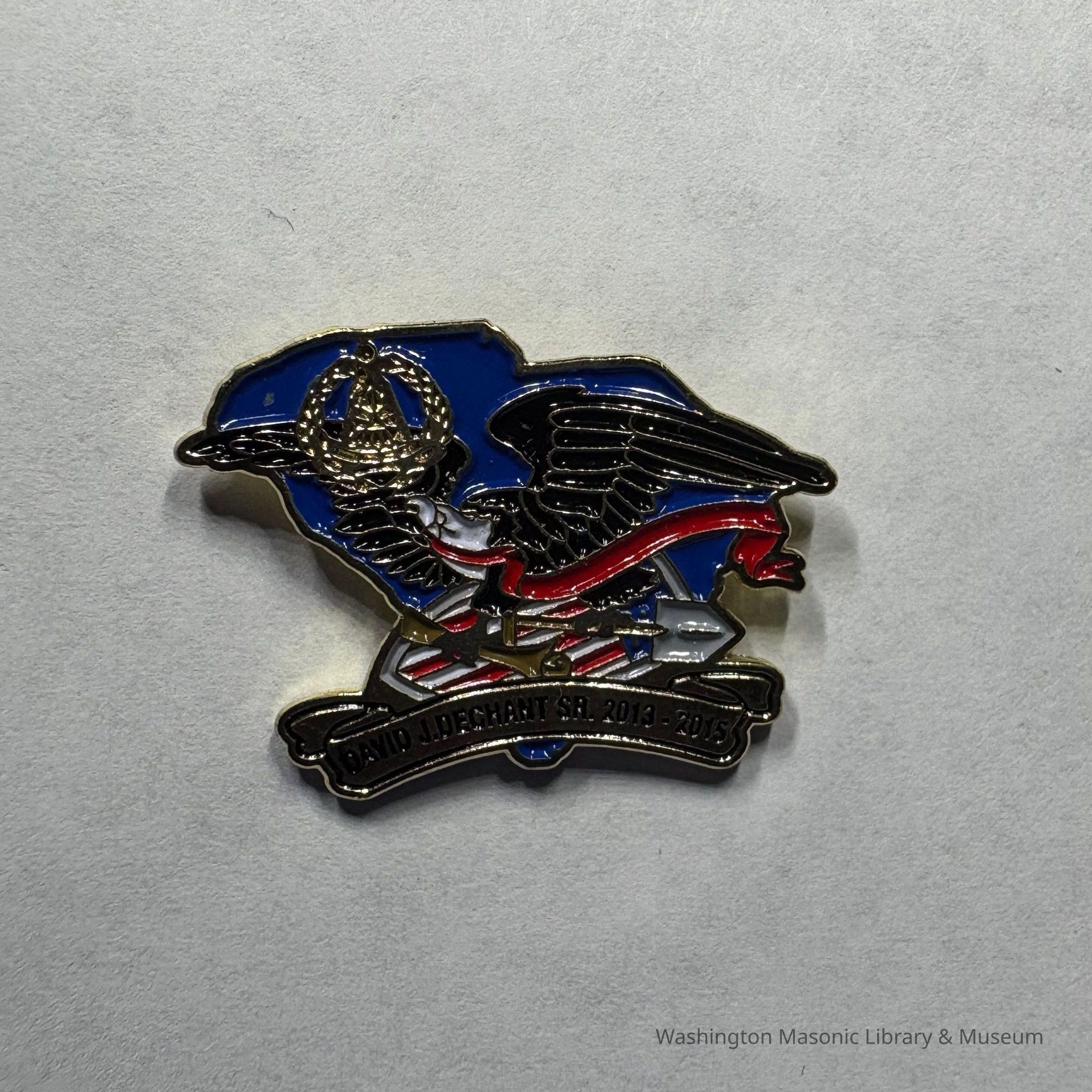 Pin: Grand Lodge of South Carolina. Eagle carrying American Flag. "David J. Dechant, Sr (2013-2015) Collected by PGM Sam Roberts (c.2015)Collection