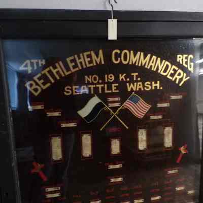 Display Case: 4th Regular Bethlehem Commandery No. 19, Knights Templar, Seattle, WA.Entry/Object ID