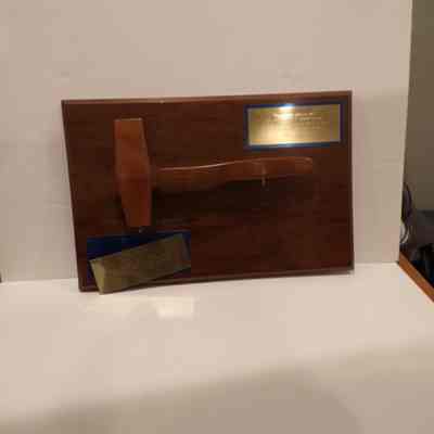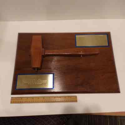 Gavel on plaque: Wooden. Presented to GM Bill Horn by Haller Lake Lodge 296. Gavel used at 9th Annual outdoor communication for 296. August 15, 1972.Entry/Object ID