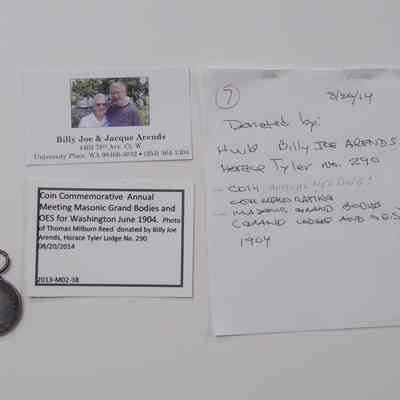 Coin: Commemorative Coin for Annual meeting Masonic Grand Bodies and OES for Washington, (June, 1904).Entry/Object ID