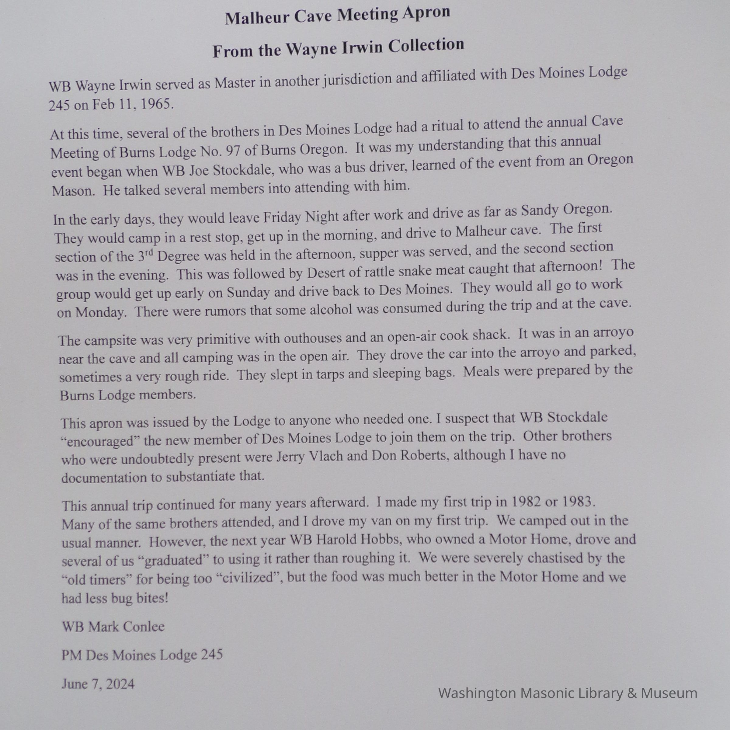 Apron: Paper. Masonic Cave Meeting hosted by Burns Lodge No. 97, A.F. & A.M., Burns, Oregon. 27th Annual MeetingCollection