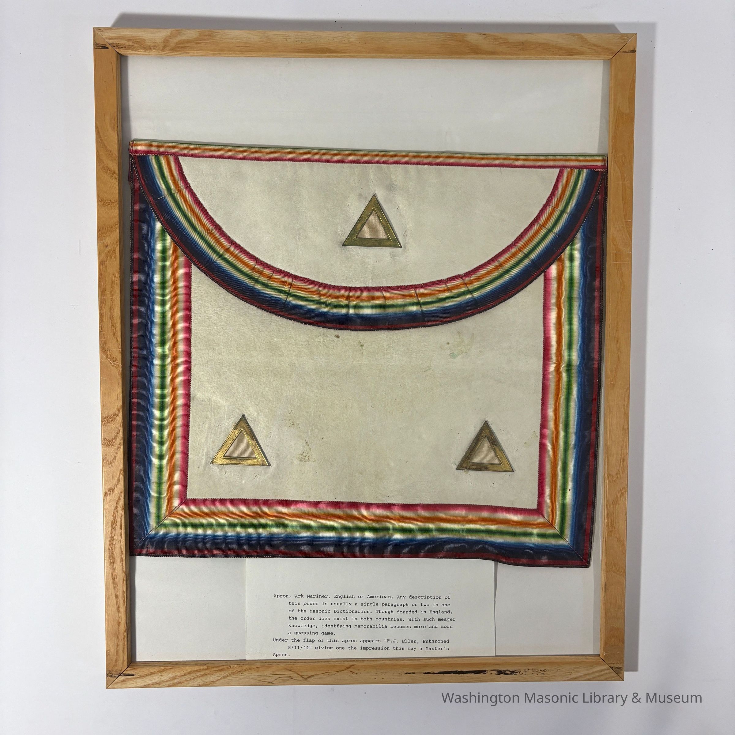 Apron: Royal Ark Mariner. Belonged to F.J. Ellen (1944)Entry/Object ID