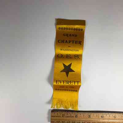 Ribbon: Yellow with Brown lettering. "Grand Chapter of Washington O.E.S./ Everett/ June 11, 1894" (1916)Collection