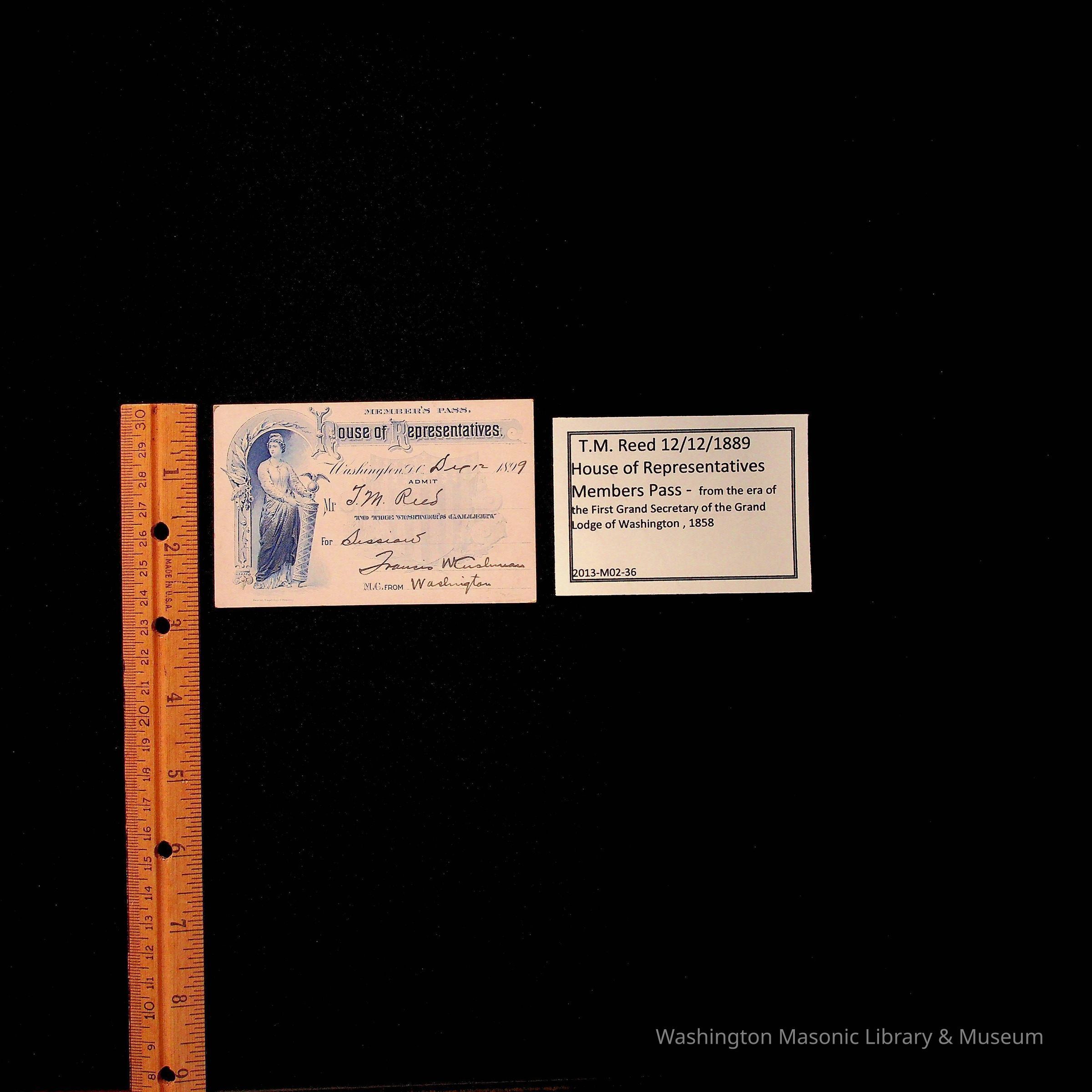 Pass: House of Representatives Members pass belonging to Thomas M. Reed. September 12, 1899