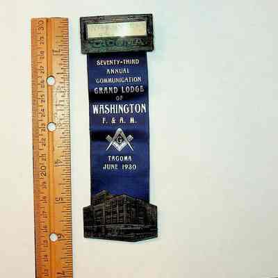 Medallion: With blue ribbon. 73rd Annual Communication Grand Lodge of Washington (1930)