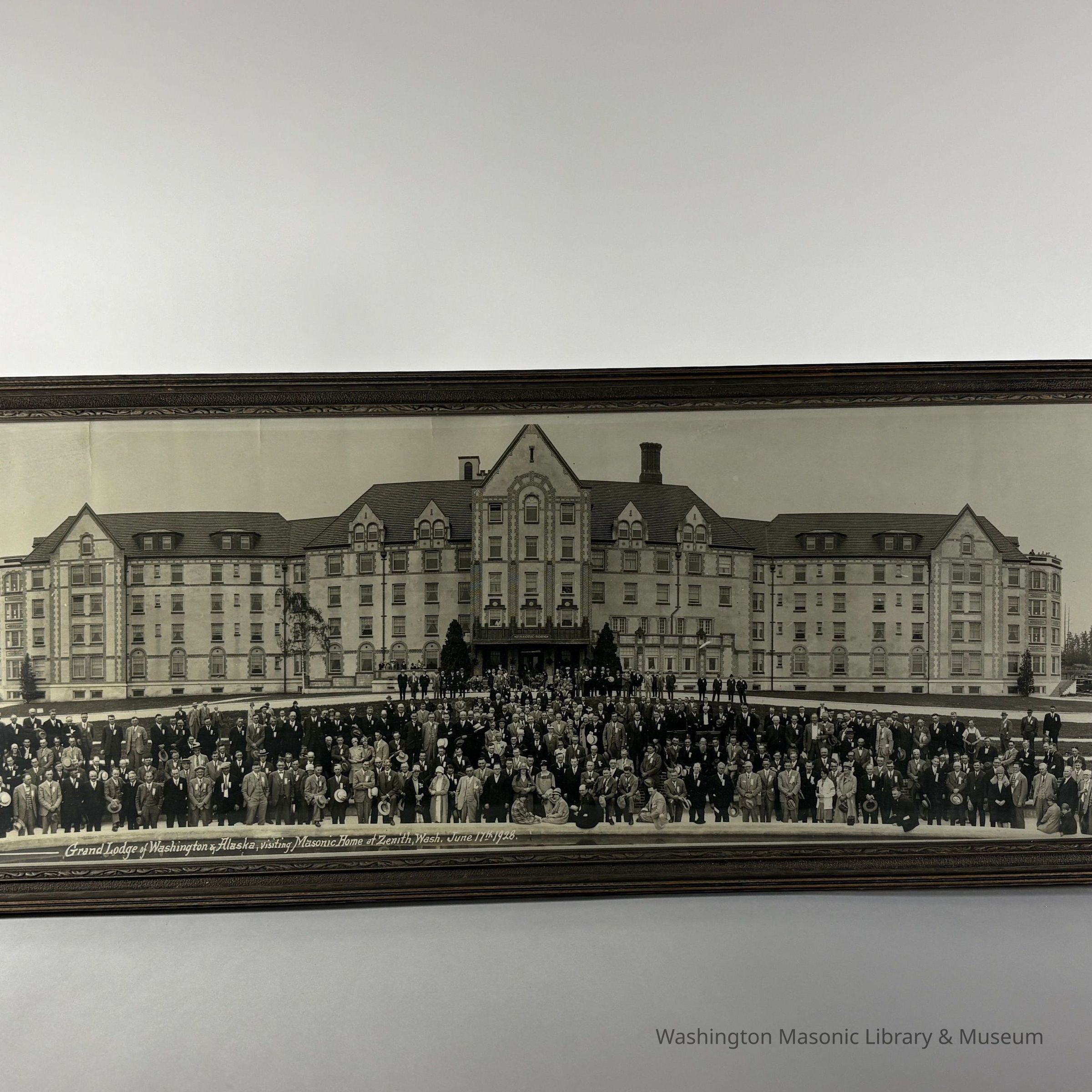 Panorama: In brown frame. Panorama Taken of the Grand Lodge of Washington & Alaska in front of the newly finished Masonic Home in Zenith, Washington. (June 17th, 1926).Collection
