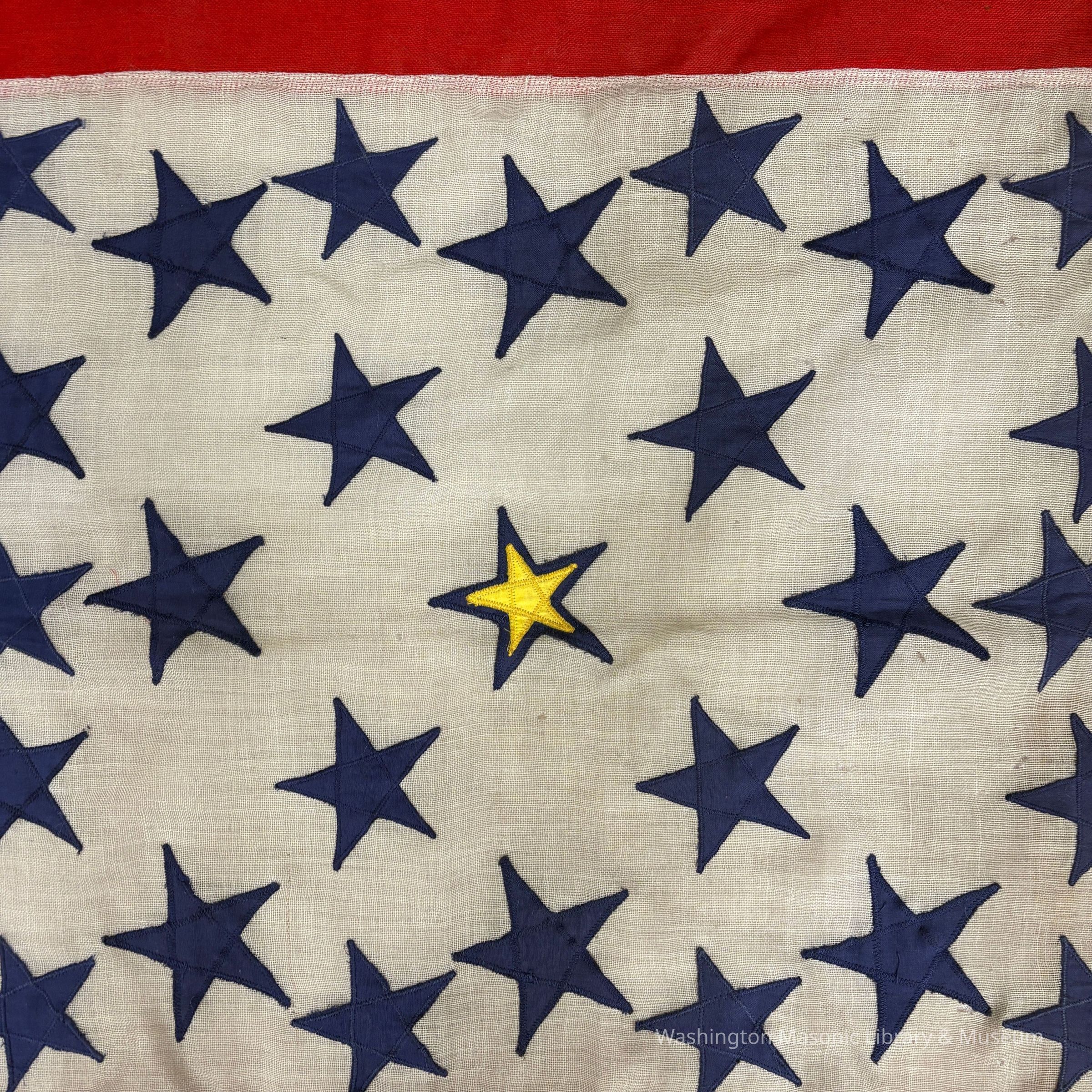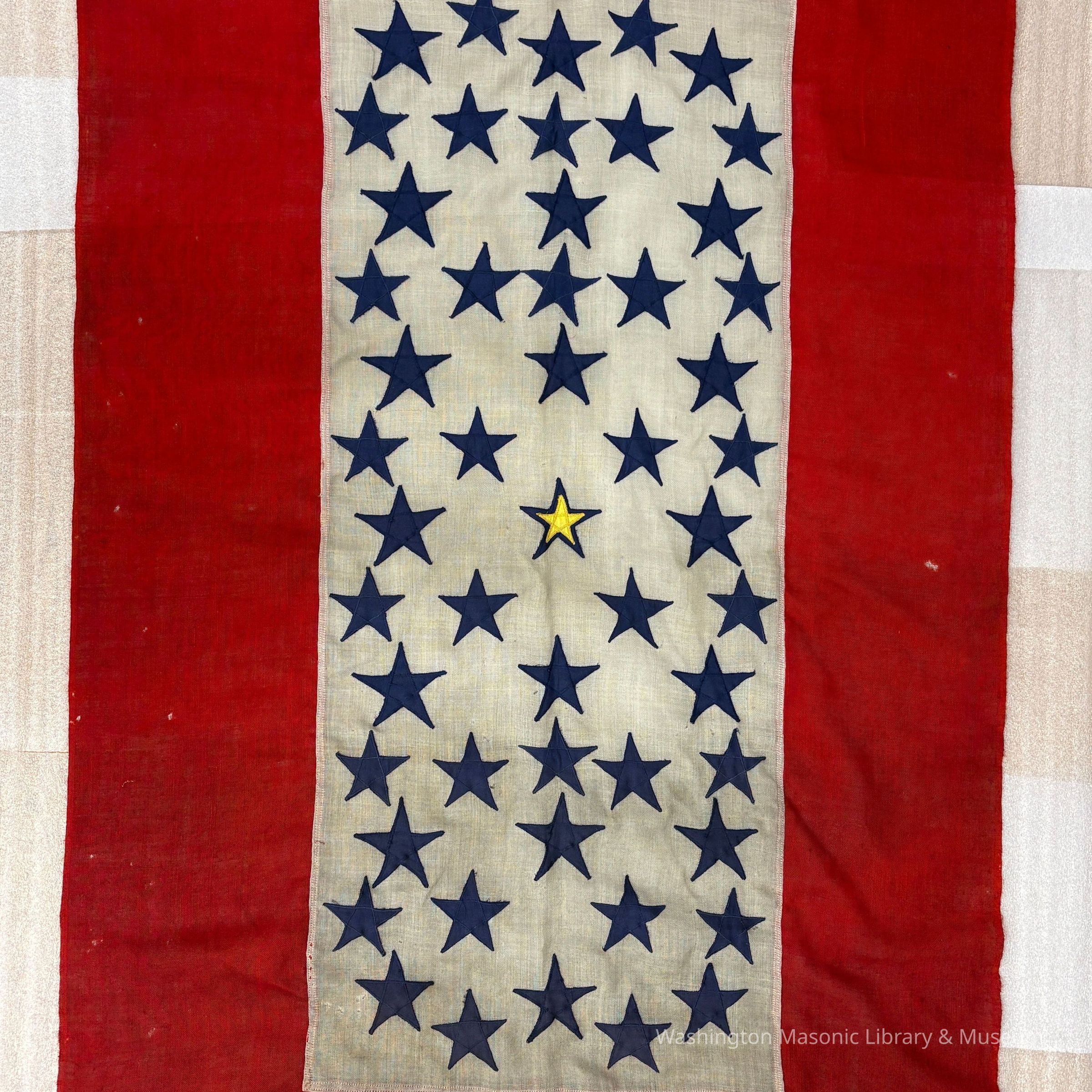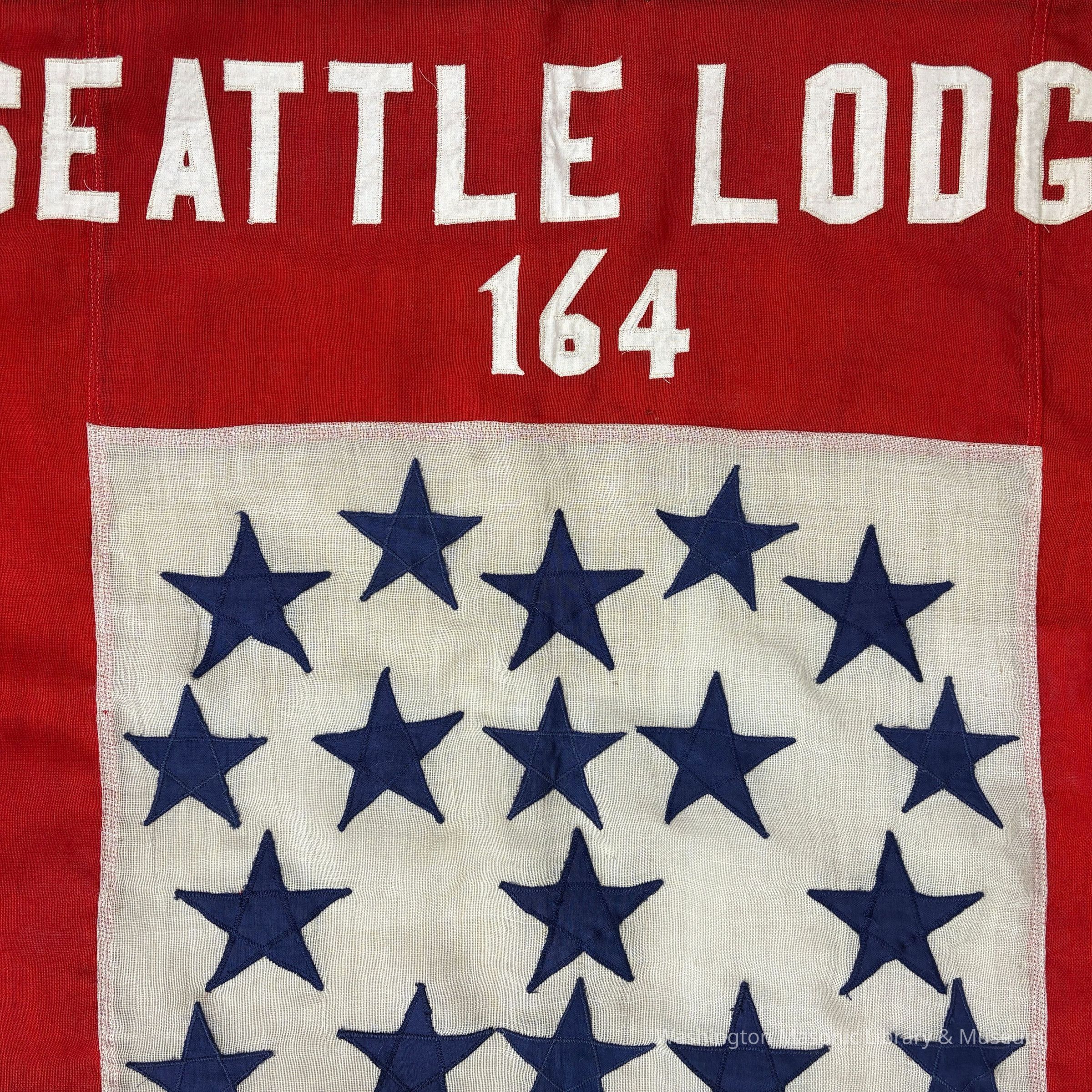 Banner: Cloth. Red white, blue, and yellow. "Seattle Lodge 164/ F. &A.M." (Early 20th century)Made/Created