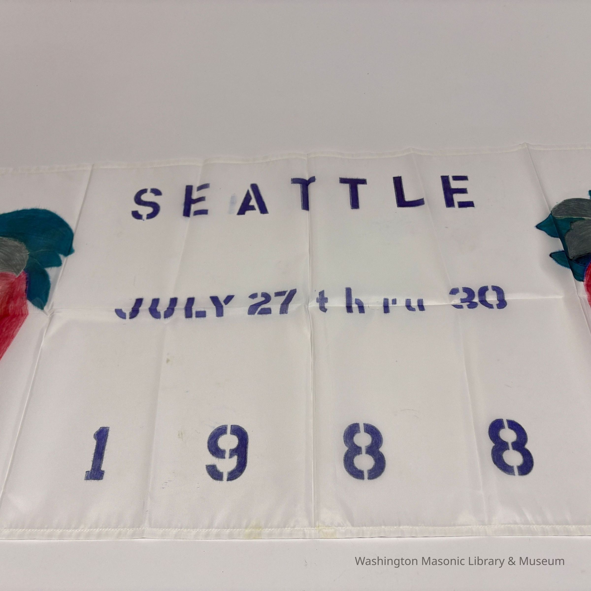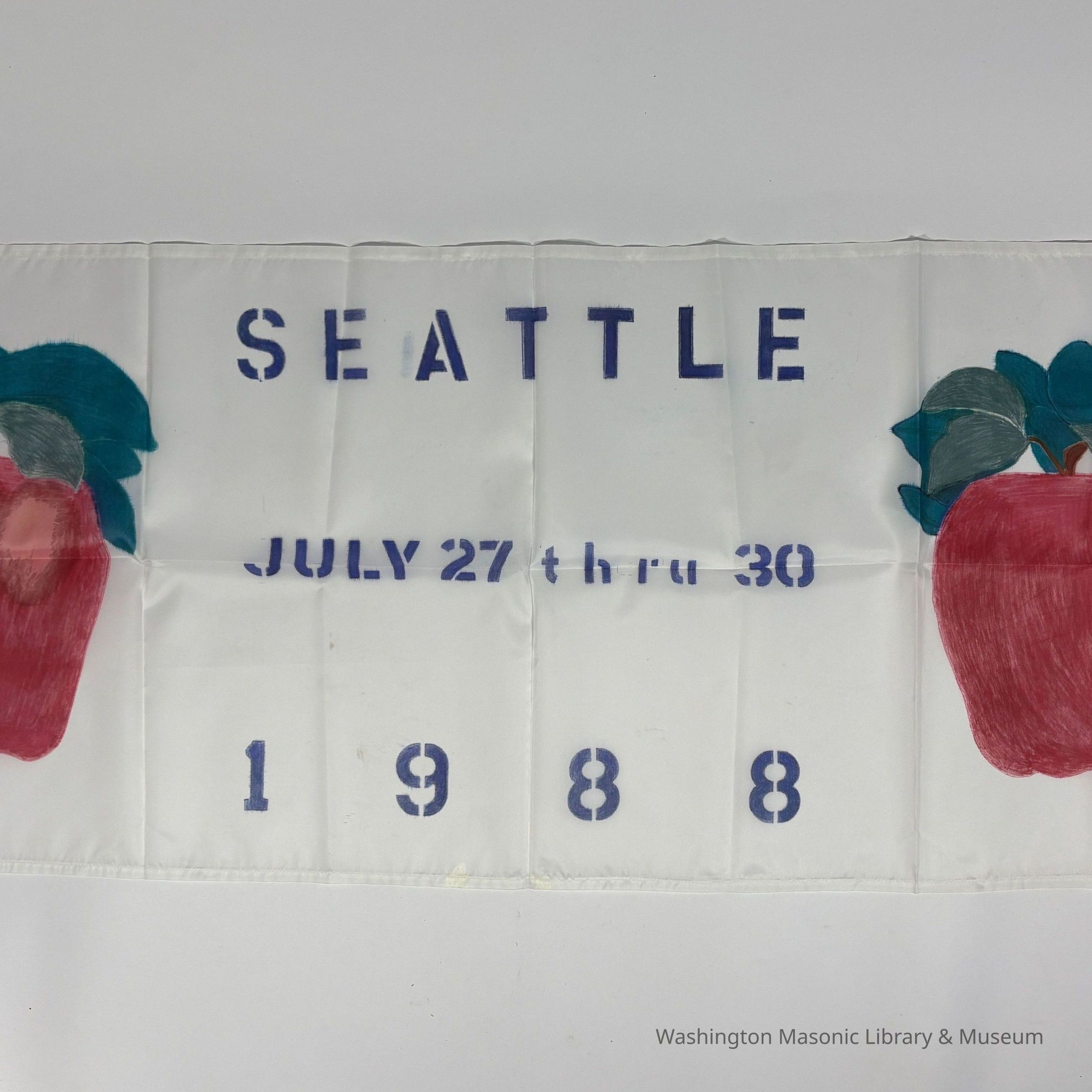 Banner: Vinyl and pen. Hand drawn apples and stenciled letters. York Rite Sovereign College 31st General Assembly Program. Seattle, Washington (July 27-30, 1988)Collection