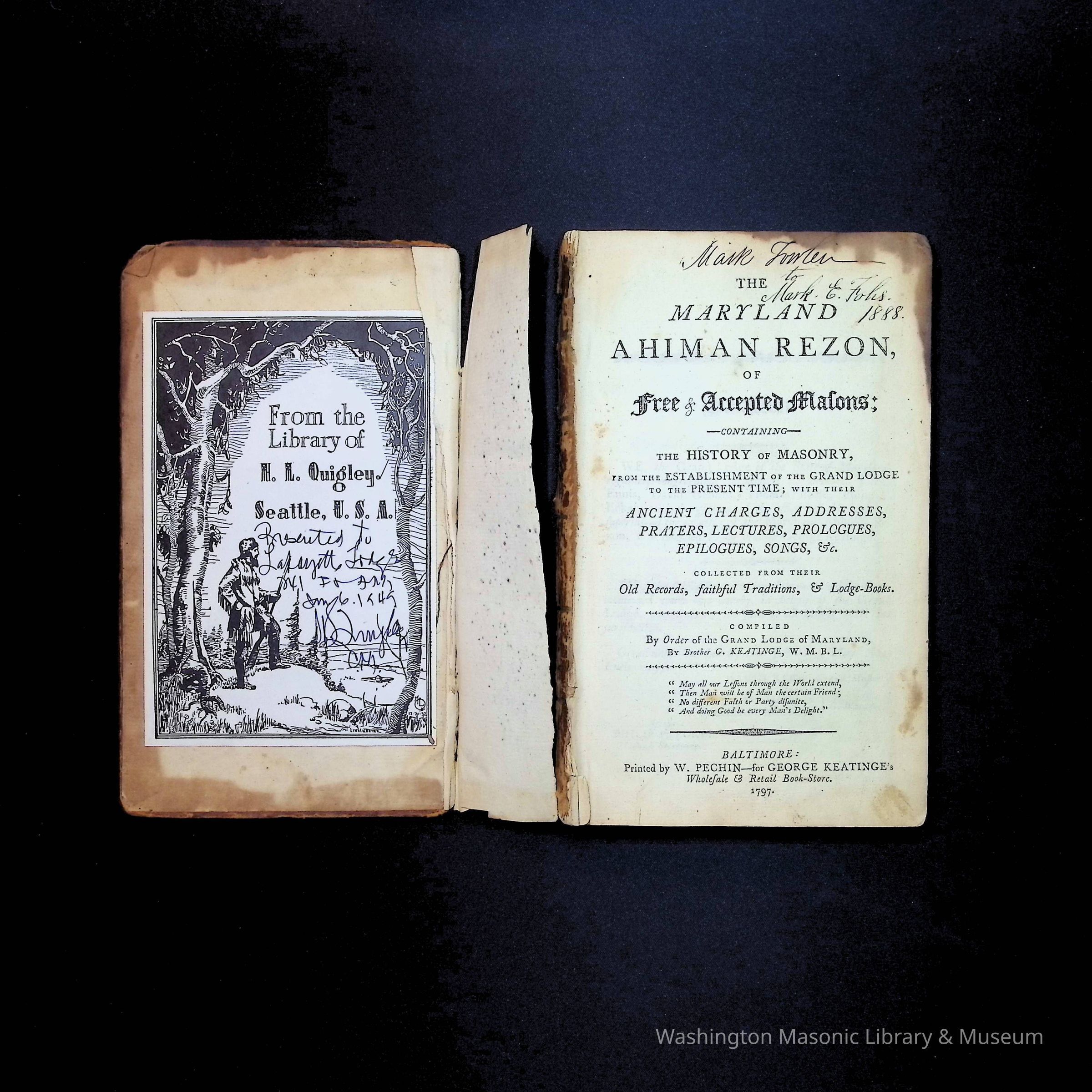 Book: The Maryland Ahiman Rezon of Free and Accepted Masons (1797)Entry/Object ID