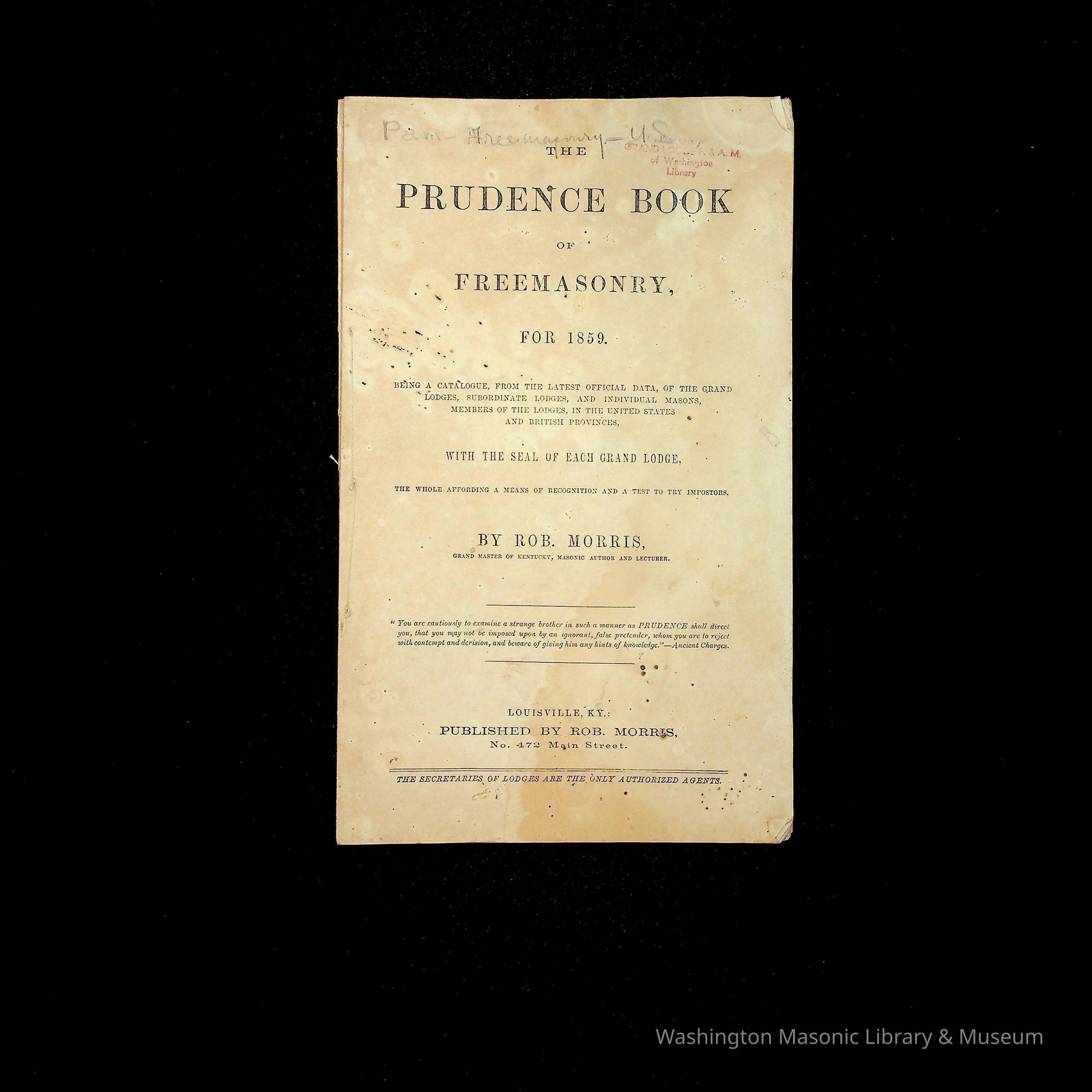 Book: The Prudence Book of Freemasonry for 1859 by Rob Morris, Grand Master of KentuckyEntry/Object ID