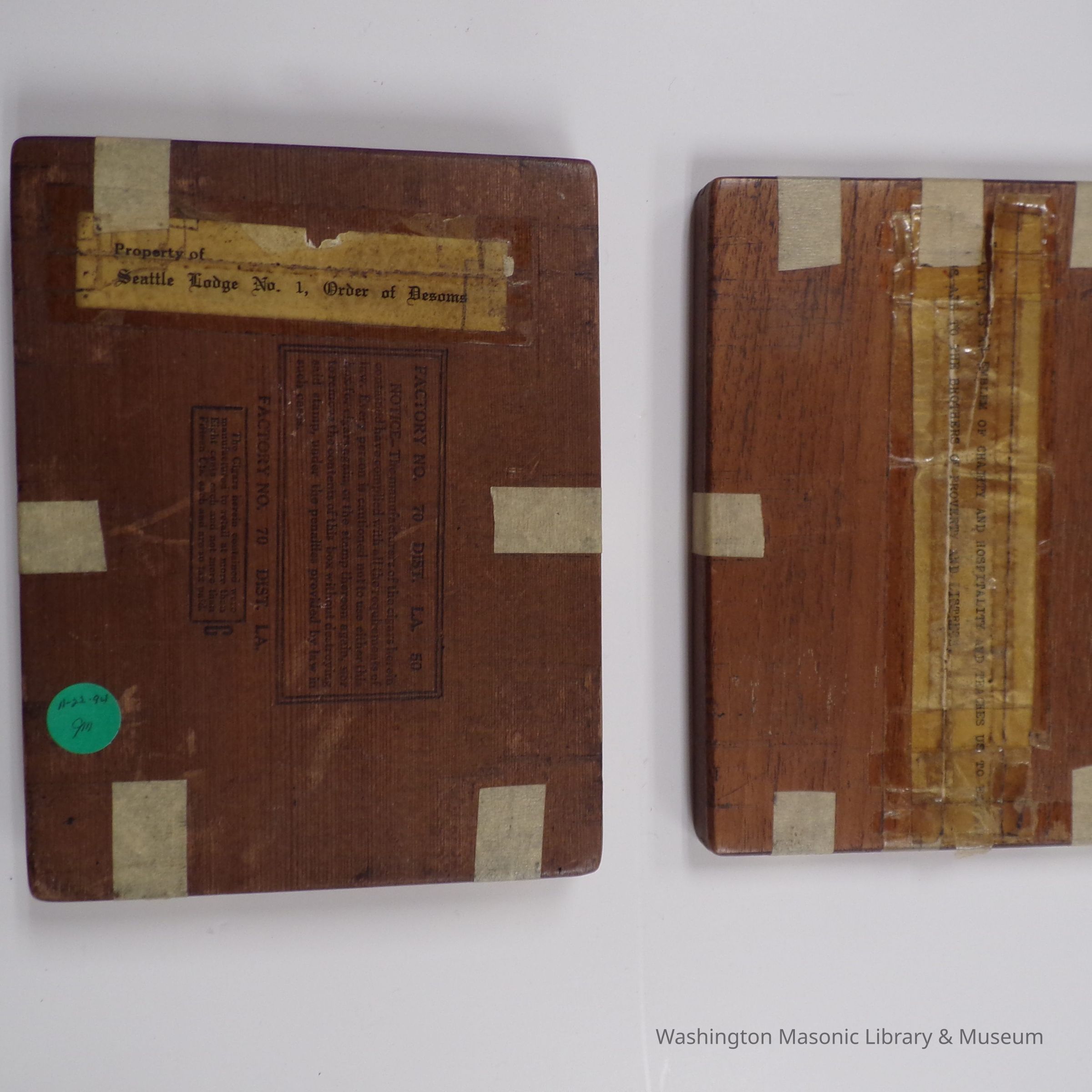 Typed label on bottom of box reads, "Property of Seattle Lodge No. 1, Order of DESOMS"Collection